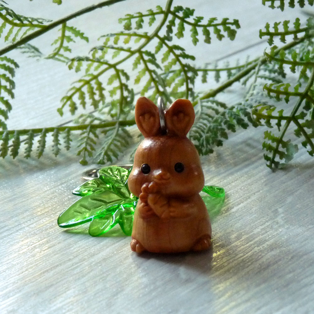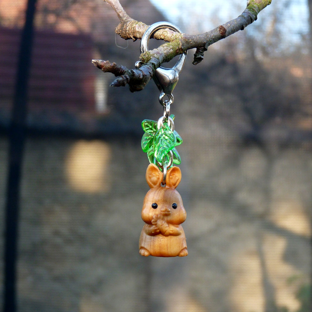 Krásný vyřezávaný přívěsek ze dřeva - králíček