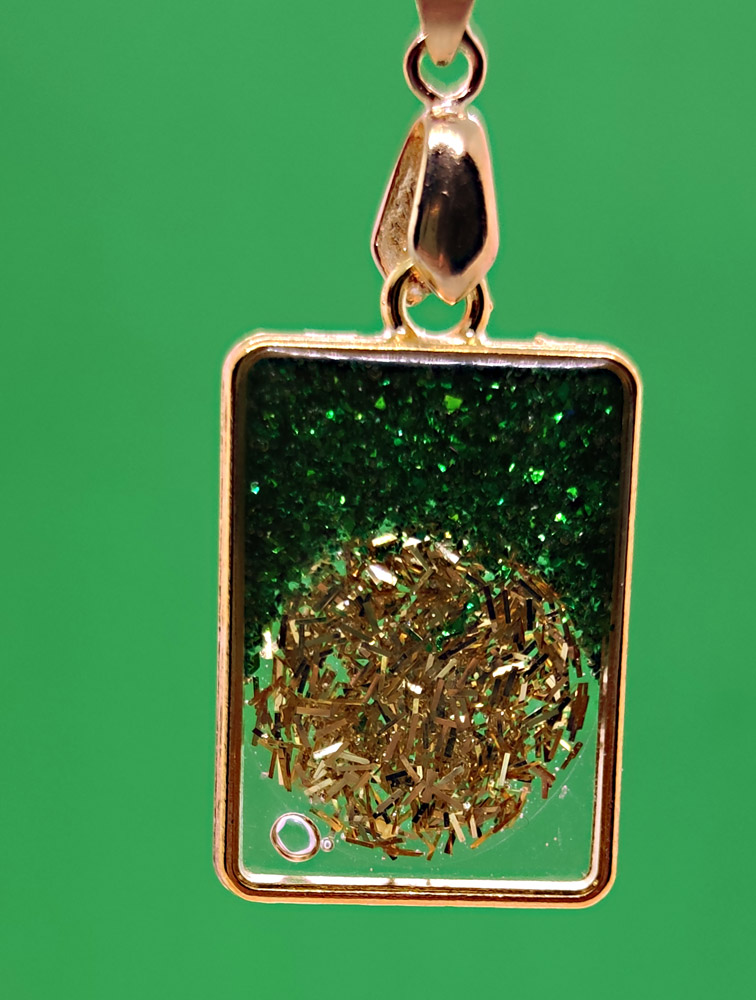 Díky průhlednosti pryskyřice vzniká zajímavý efekt hloubky. Šperk se mění podle světla a pohybu – jemně se třpytí a přitahuje pohledy.