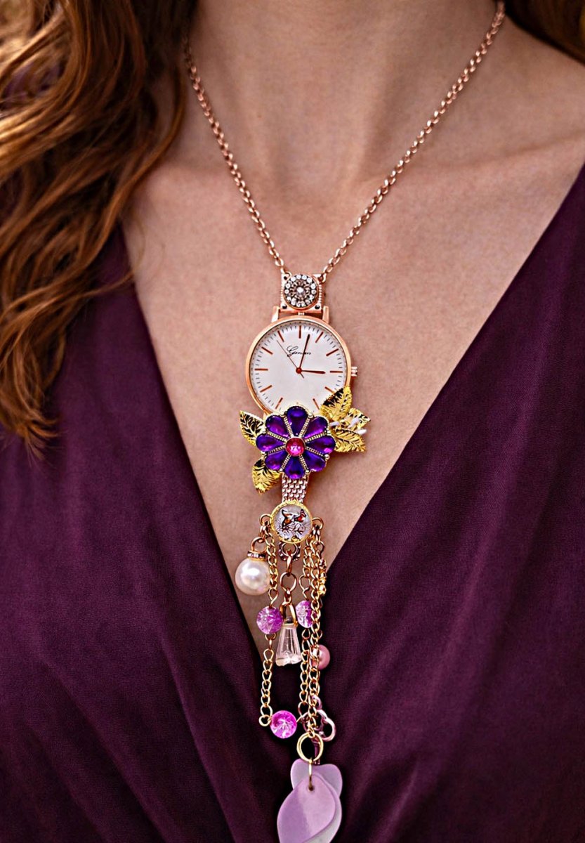 přívěsek s hodinkami, hodinky na krk, vintage šperk, originální šperk, ruční práce, romantický styl, dámský šperk, boho šperk, extravagantní doplněk, přívěsek s řetízky, jedinečný šperk, dárek pro ženu