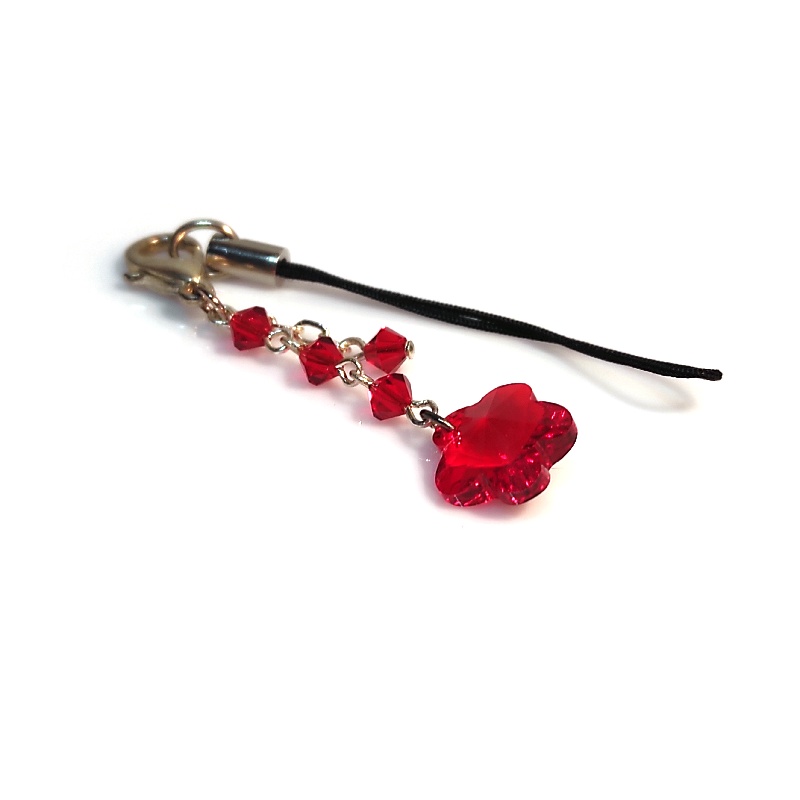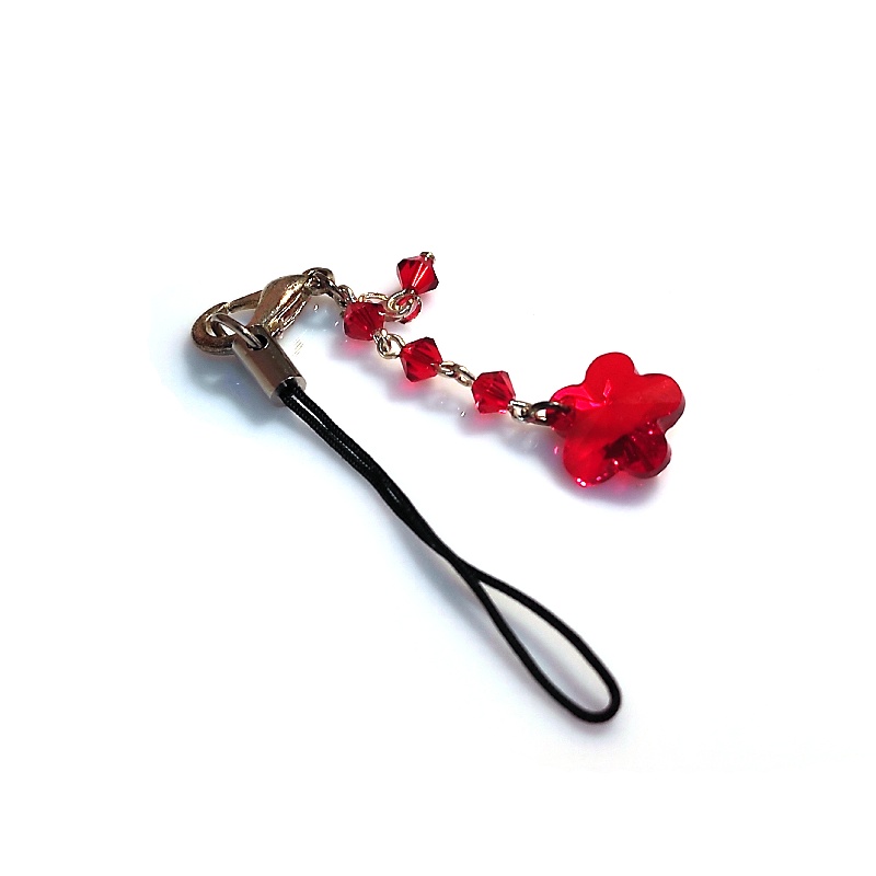Rozzáří každý telefon, peněženku i klíče! Tento jemný přívěsek je jako kapka kouzla, která si našla cestu do vašeho všedního dne. Je vyroben z ceněných broušených korálků Swarovski, které hrají ohnivými tóny červené a jiskří při každém pohybu.