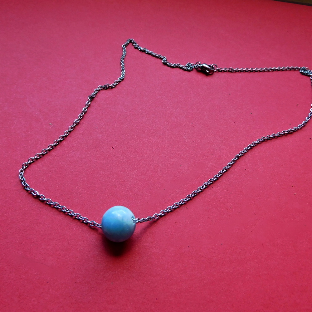 Nerezový řetízek s volně se pohybující kuličkou larimaru...
