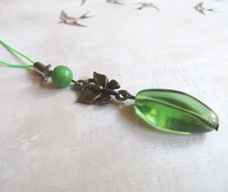 Přívěsek na mobil, pouzdro či cokoli jiného, vyrobený ze skleněných broušených korálků - ohňovek - a komponentů z bižuterního kovu. Délka přívěsku bez poutka je 6 cm.