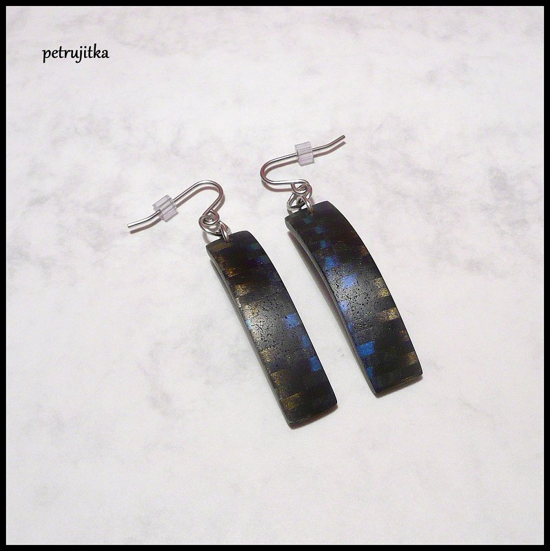 Originální, lehoučké náušnice z polymerové hmoty. Barva je černá se zlatou