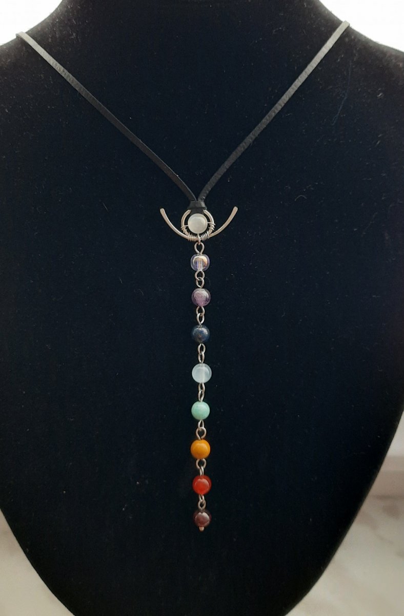Zavěšen na jemné černé přírodní kůži s nastavitelnou délkou dle potřeby.