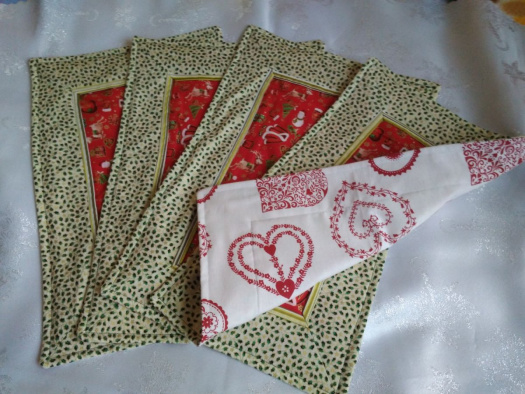 Vánoční prostírání bavlněné. Červený stred je orámován zelenými lístečky. Doporučené praní na 40°C. Míry cca 44x 29 cm. Cena je za 1 kus.