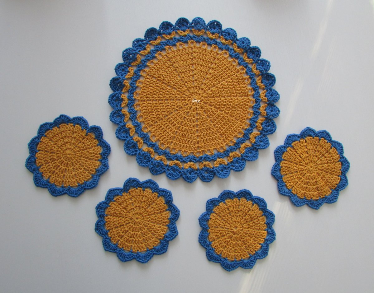 Háčkované prostírání, na stůl pod misku, talíř, konvici ..., k dečce,