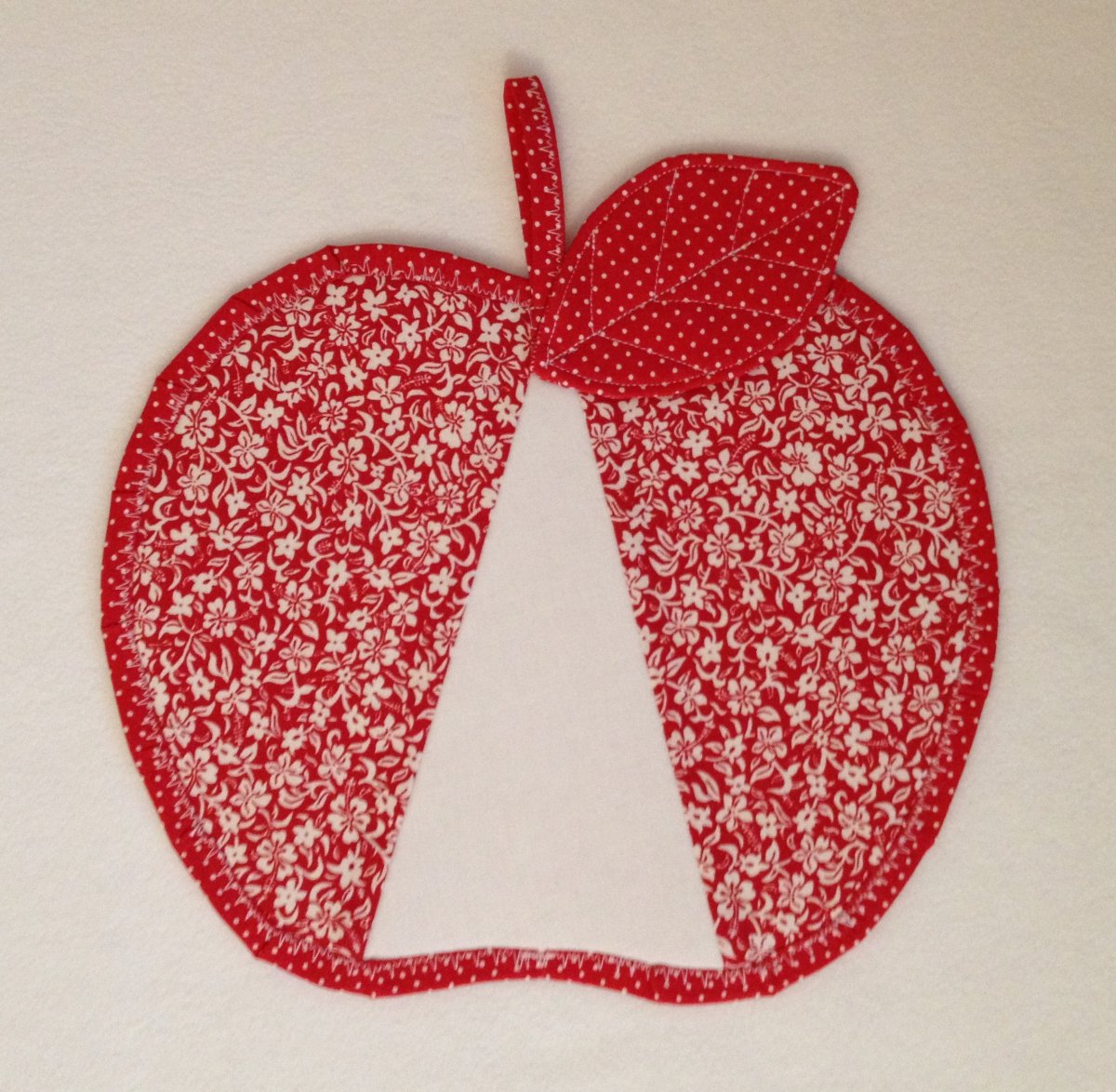 Prostírání ve tvaru jablíčka je ušito z vysrážené 100% bavlny. Prostírky jsou vyztuženy silnější výztuhou, proto hezky drží tvar. Prostírku lze také použít jako podložku pod horký hrnec nebo jí zavěsit a může tak sloužit jako dekorace.