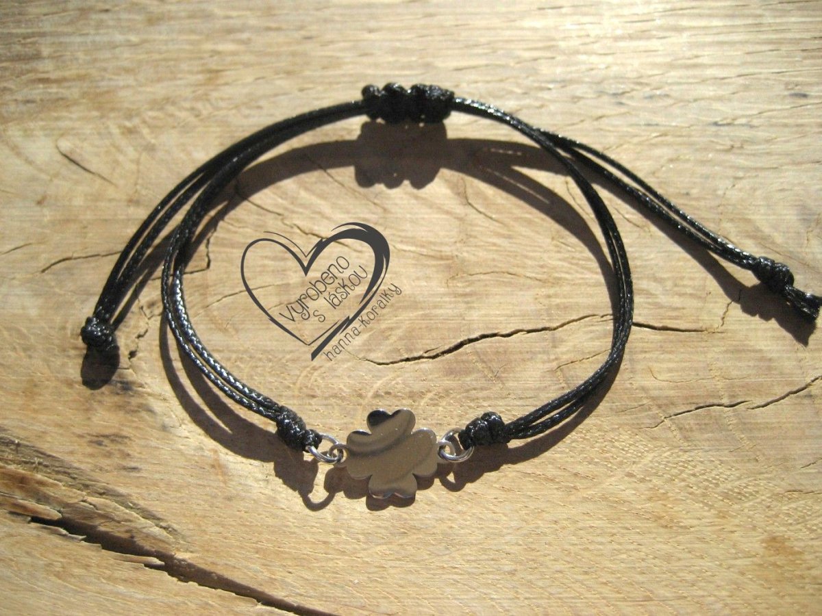Jednoduchý šňůrkový náramek s přívěskem z nerezové oceli a posuvným uzlem, takže lze roztáhnout až na 26-27cm