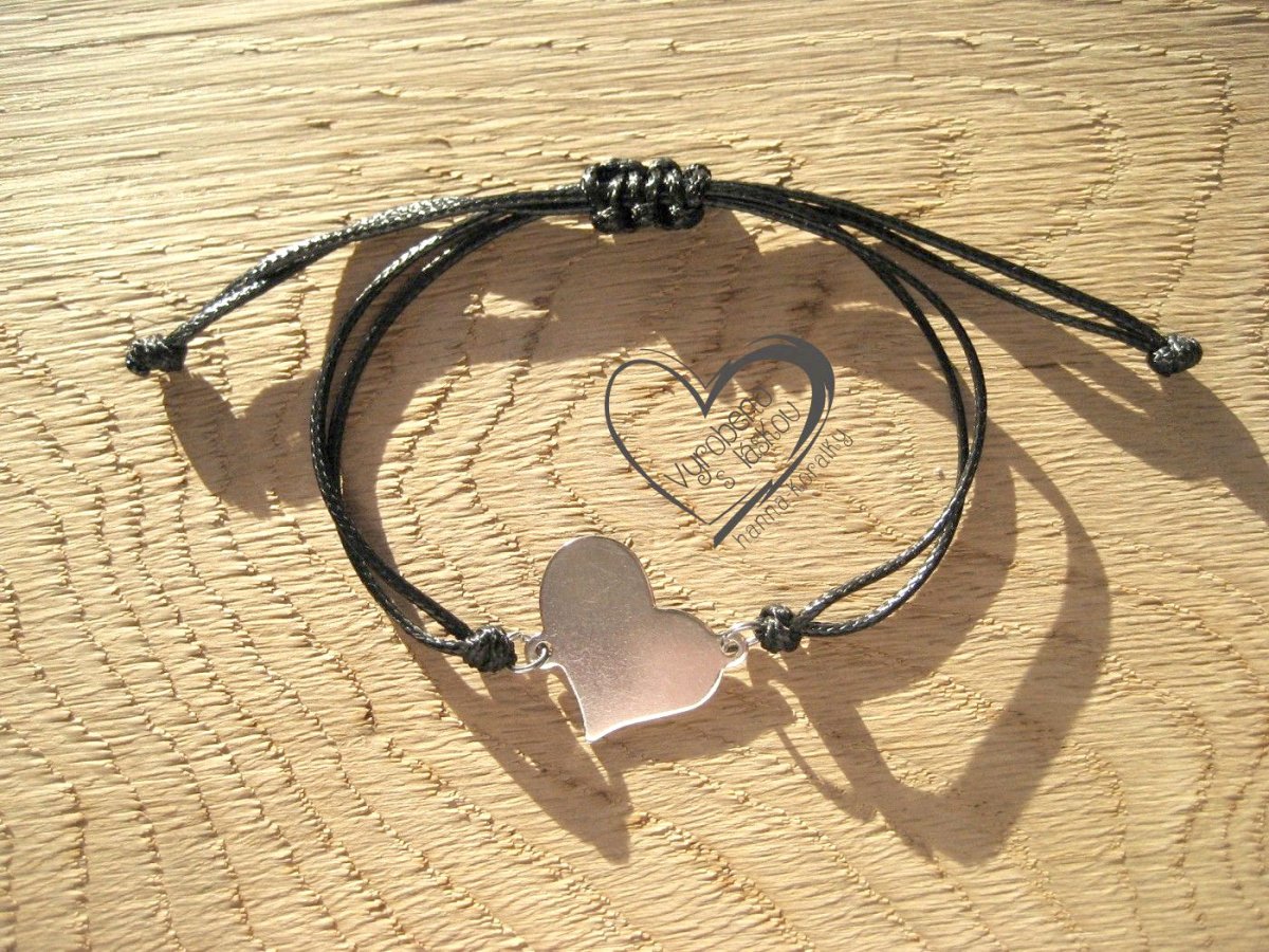 Jednoduchý šňůrkový náramek s přívěskem z nerezové oceli a posuvným uzlem, takže lze roztáhnout až na 26-27cm