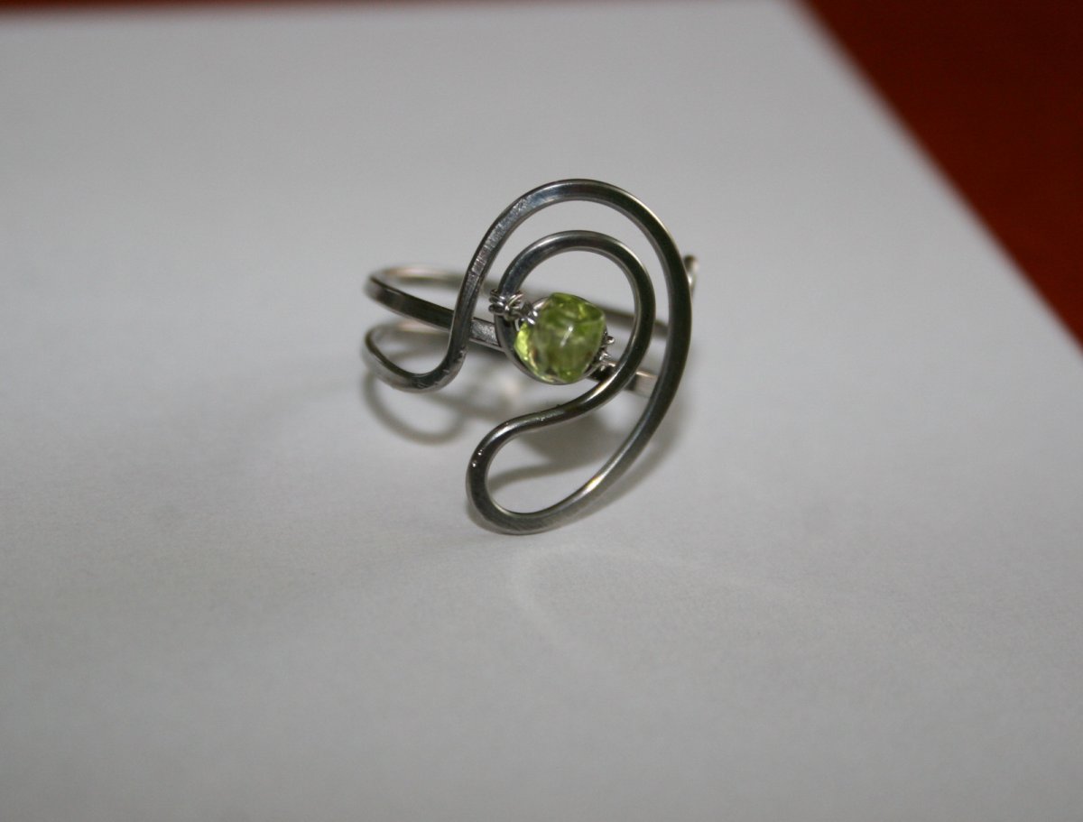Prstýnek na nožku je ručně tepaný z chirurgické oceli.