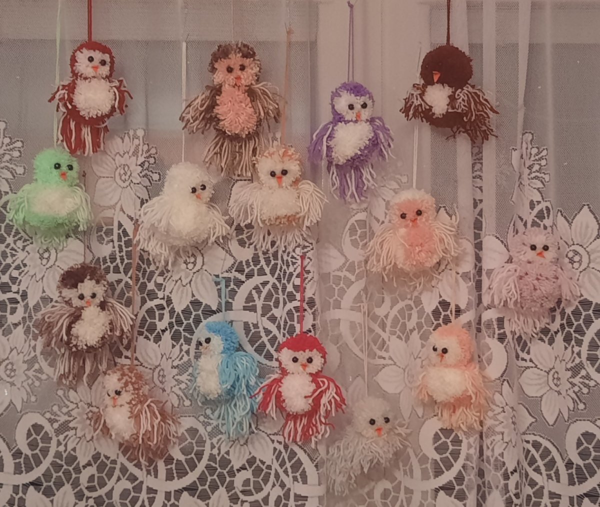 Závěsný ptáček z vlny. Velikost cca 12 cm.