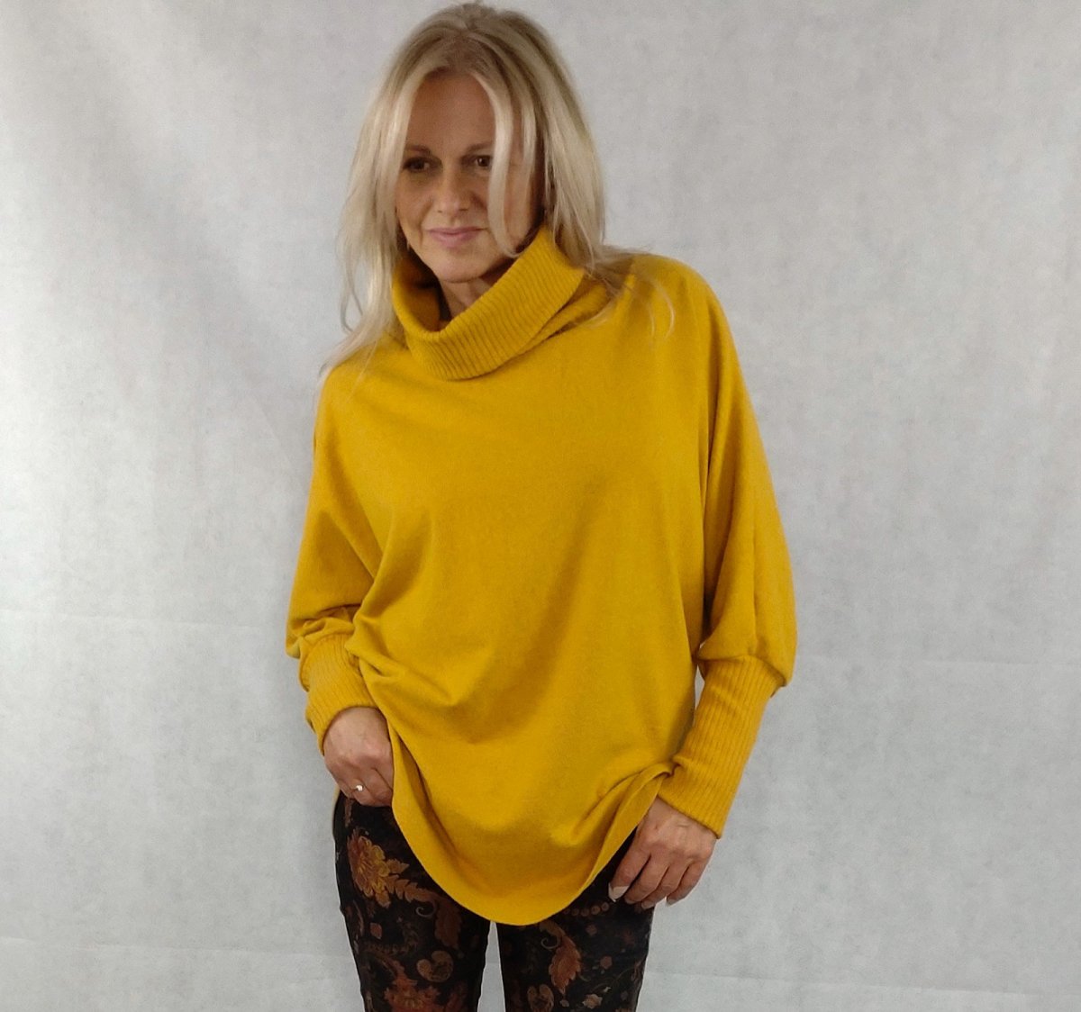 Pohodlný pulovr ve stylu ponča. Narozdíl od ponča má rukávy.