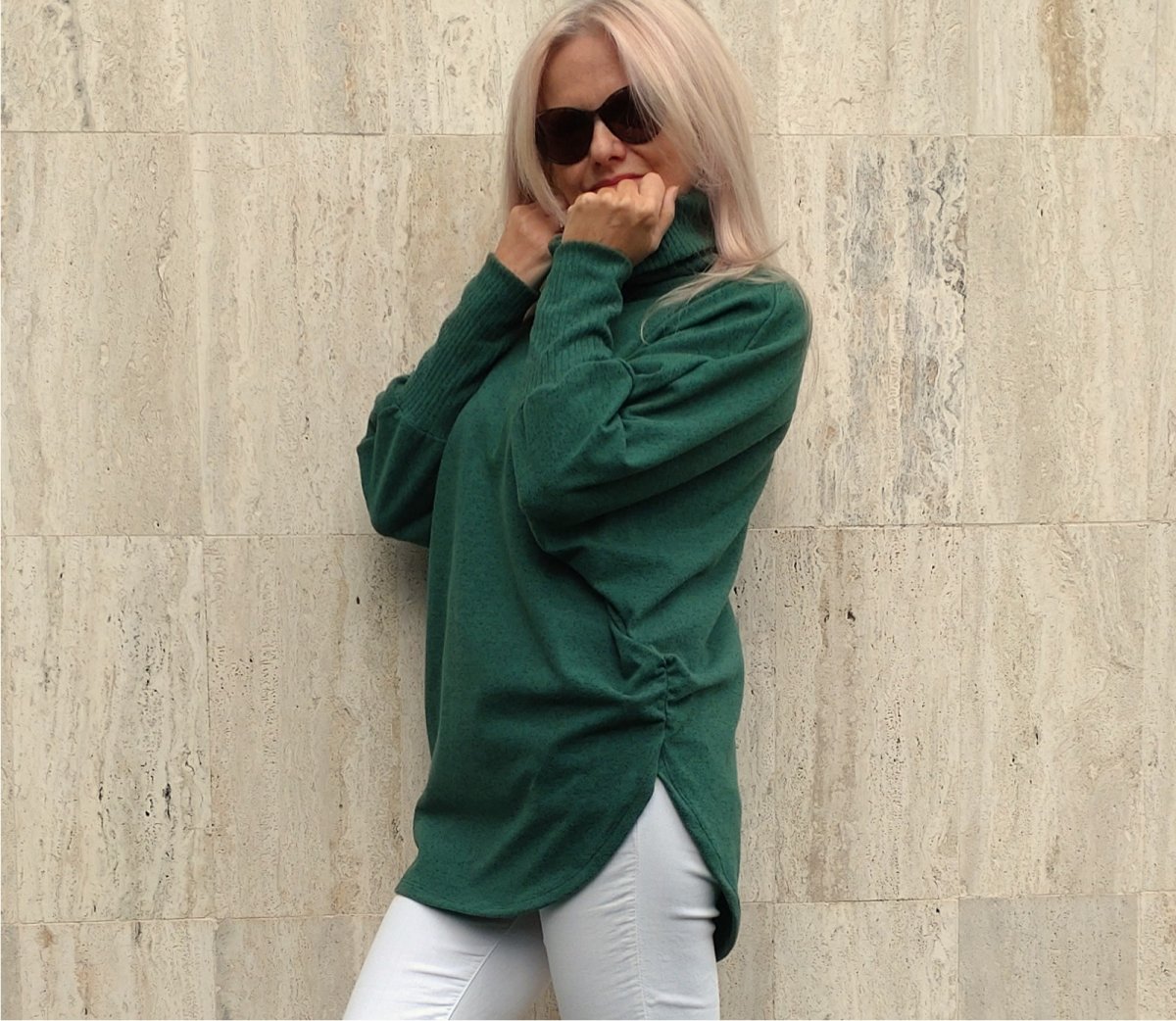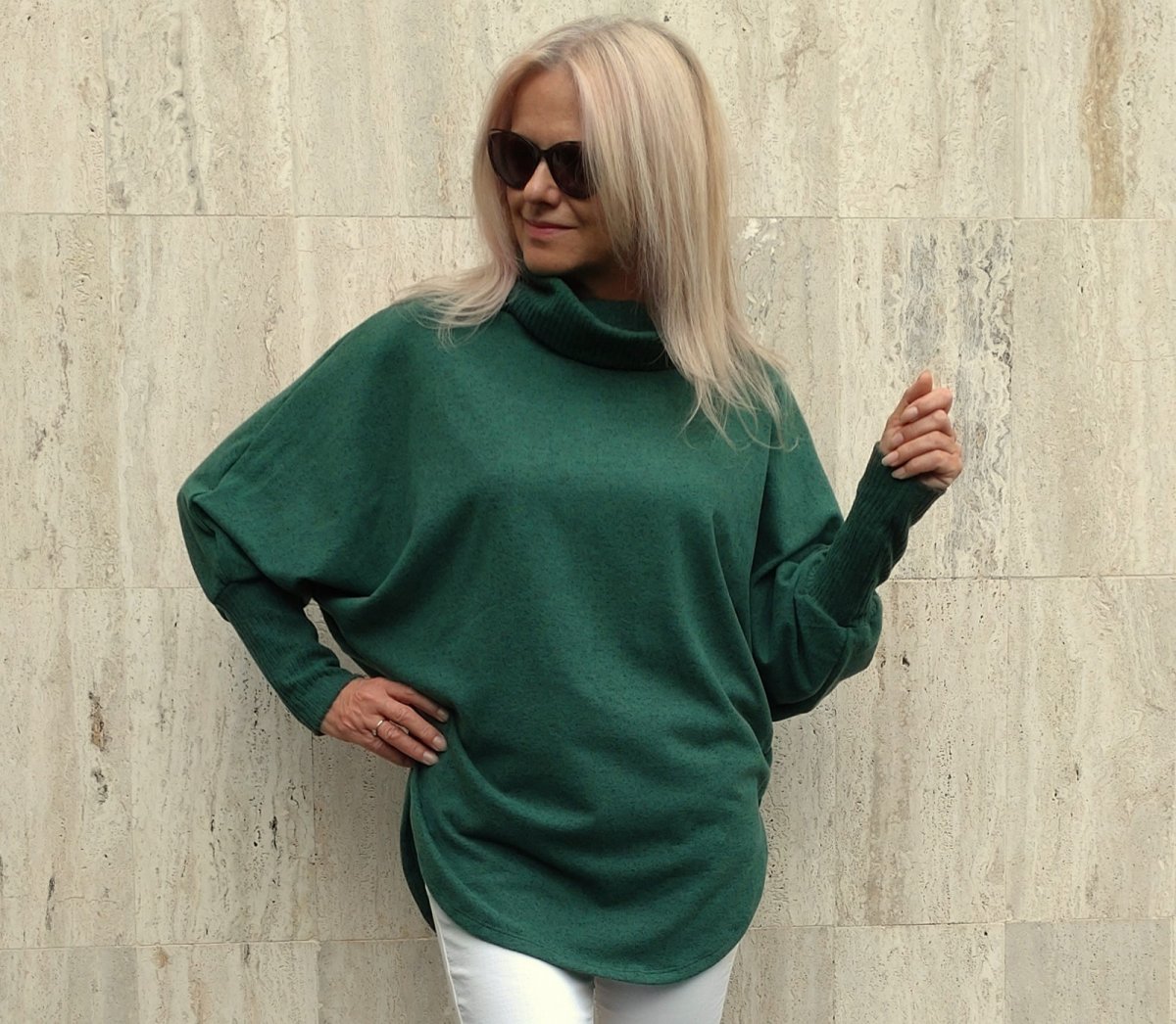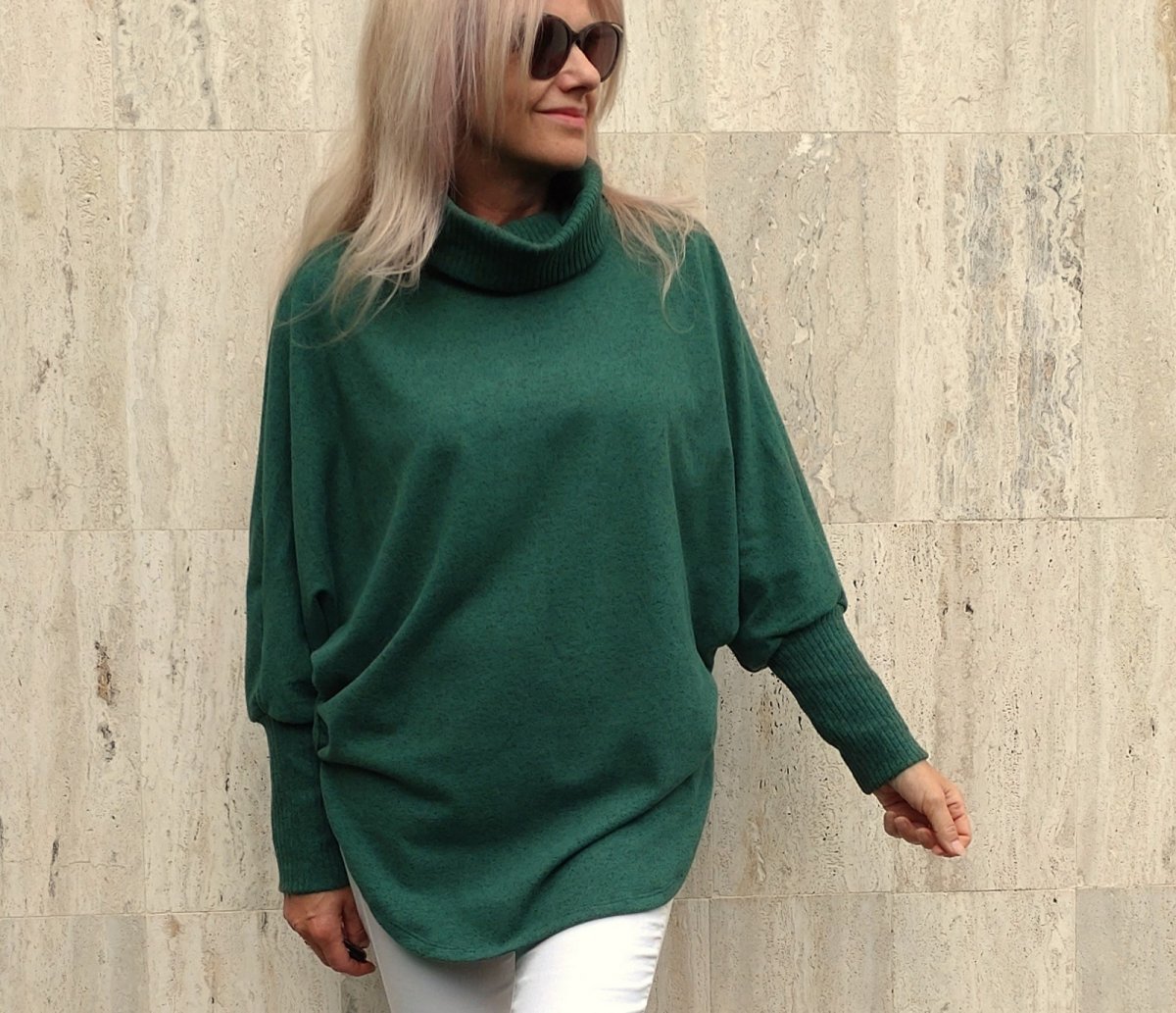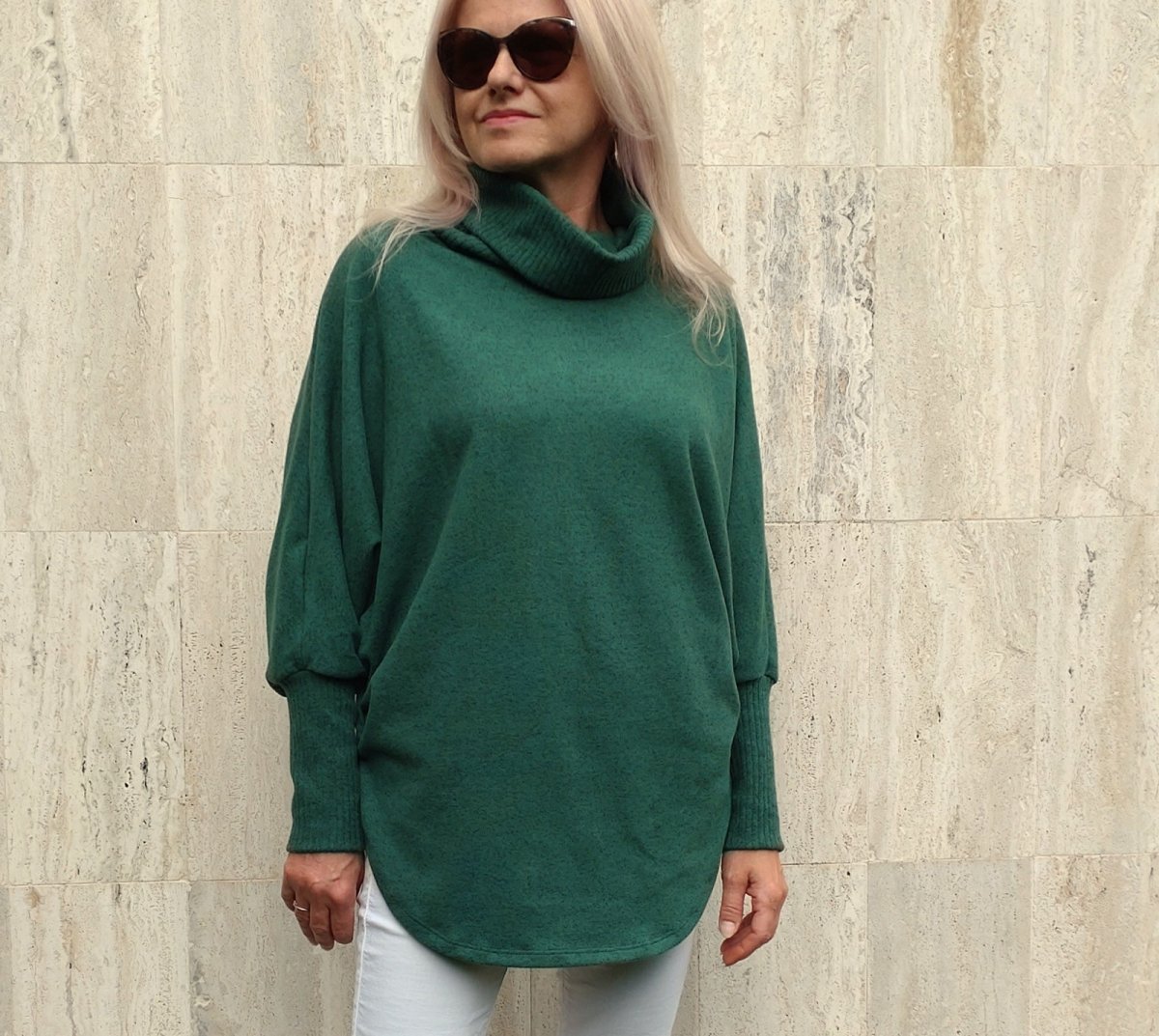 Pohodlný pulovr ve stylu ponča. Narozdíl od ponča má rukávy.
