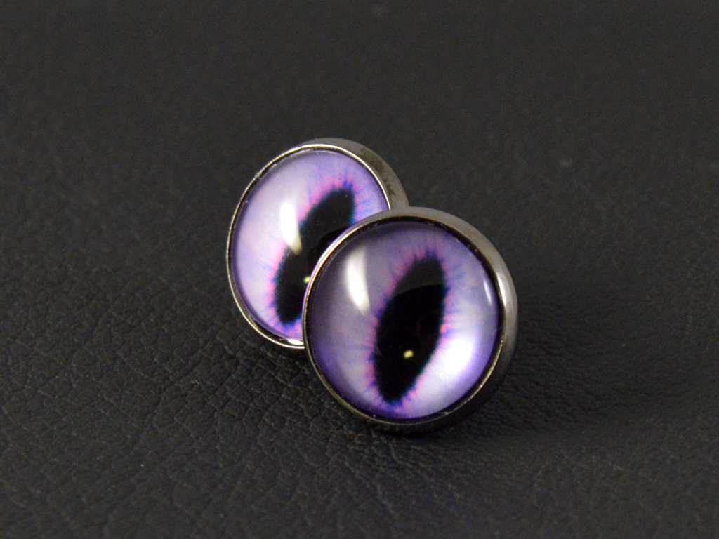 Puzetkové náušnice se skleněnou čočkou s motivem dračího oka o velikosti 12 mm.