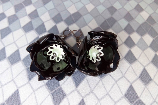 Ručně vyrobeno dle vlastního návrhu z recyklovaných PET lahví s bižuterními komponenty a korálky.