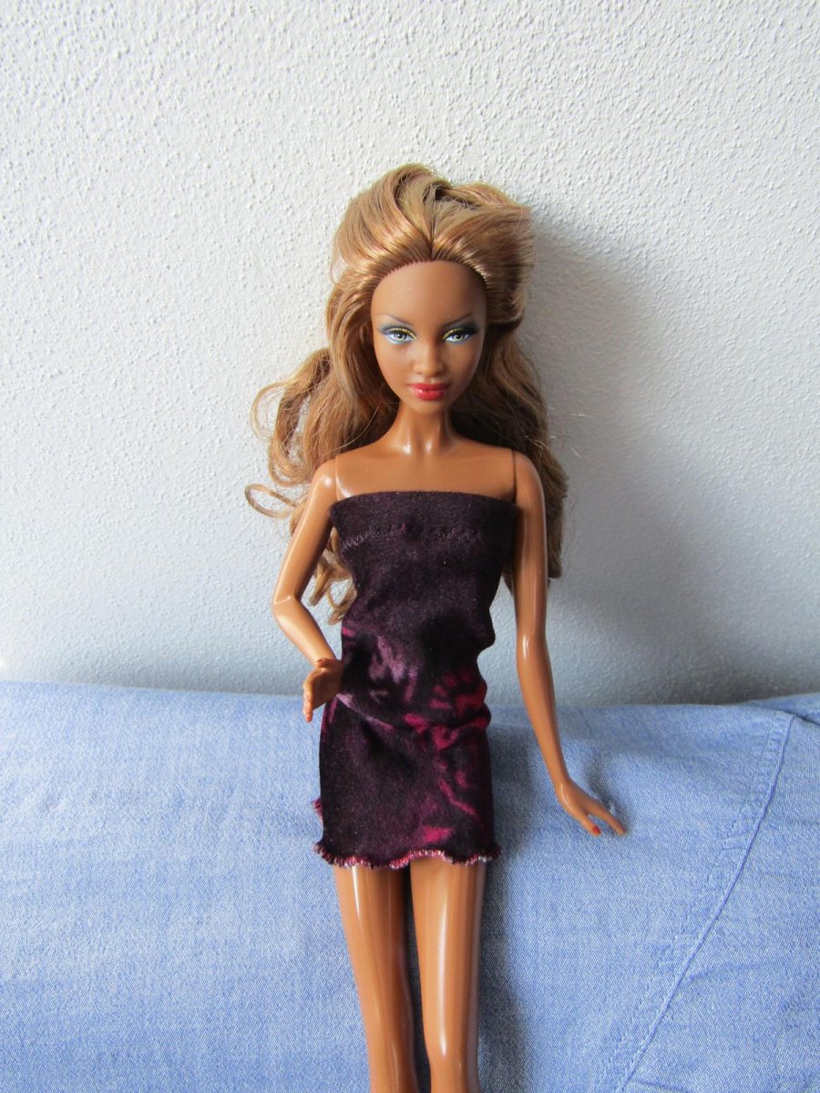 Šaty z vínovorůžového pružného sametu. Jednoduše se jen natáhnou na panenku.