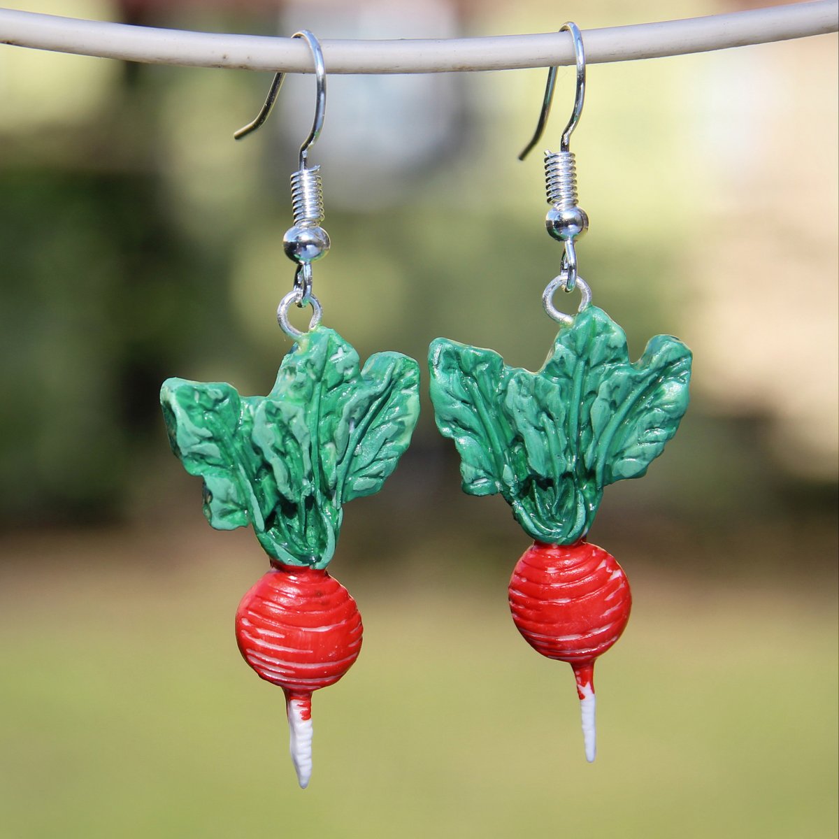 Náušnice s ředkvičkami z polymerové hmoty (3,3x1,9cm).