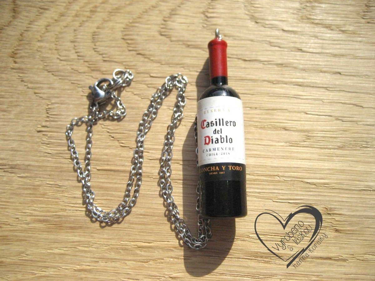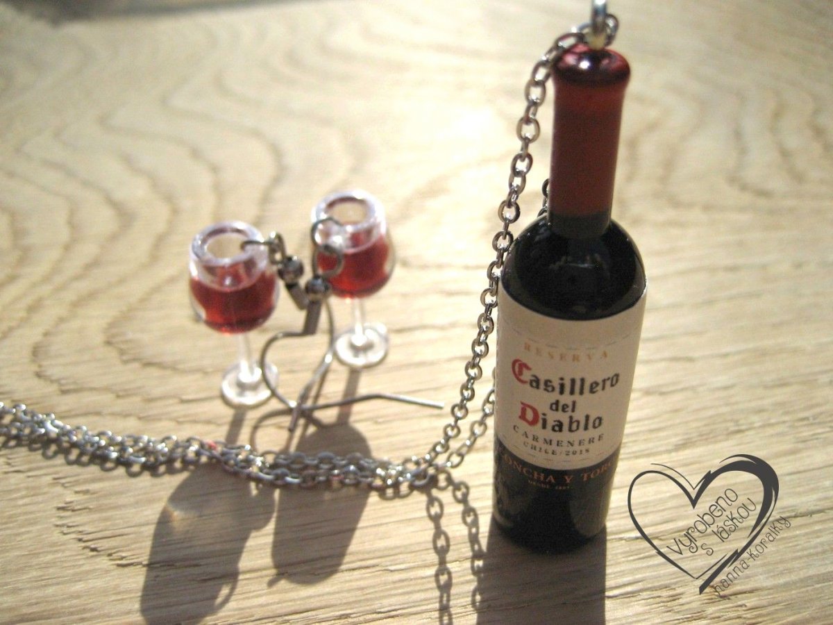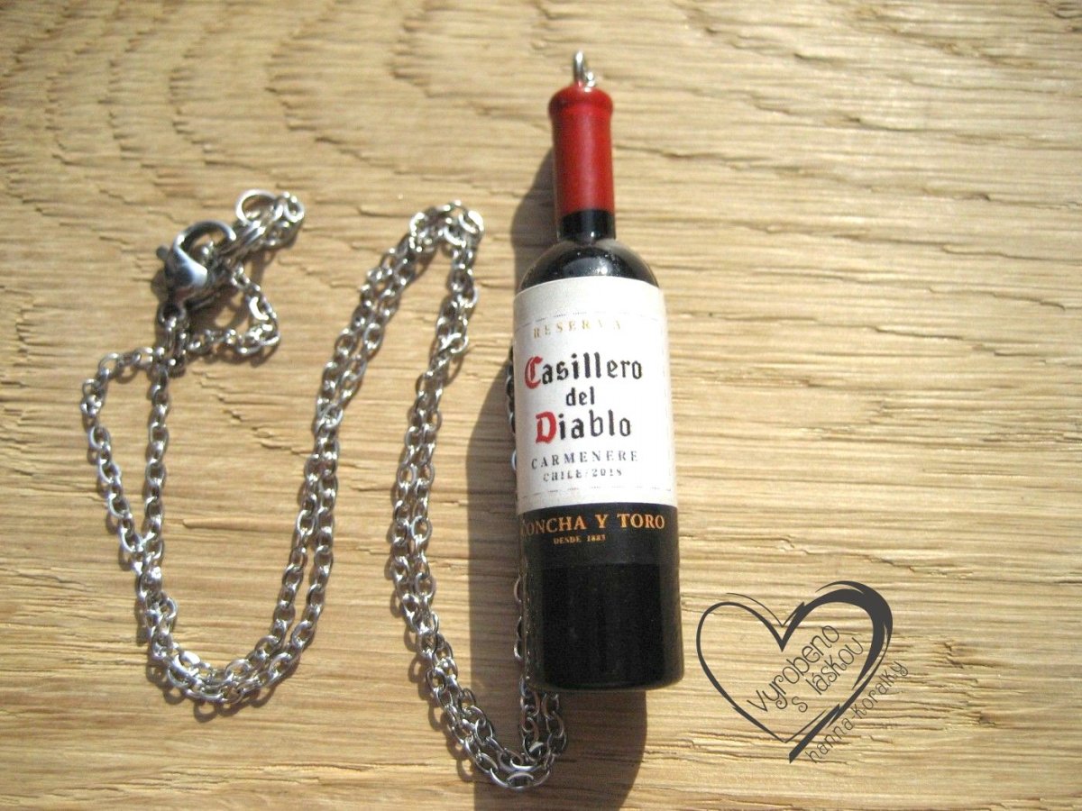 Vtipný řetízek z nerez oceli 45cm s přívěskem červeného vína 4,5cm, uvedená cena je za řetízek s vínem, v nabídce jsou k zakoupení i vinné skleničky jako náušnice