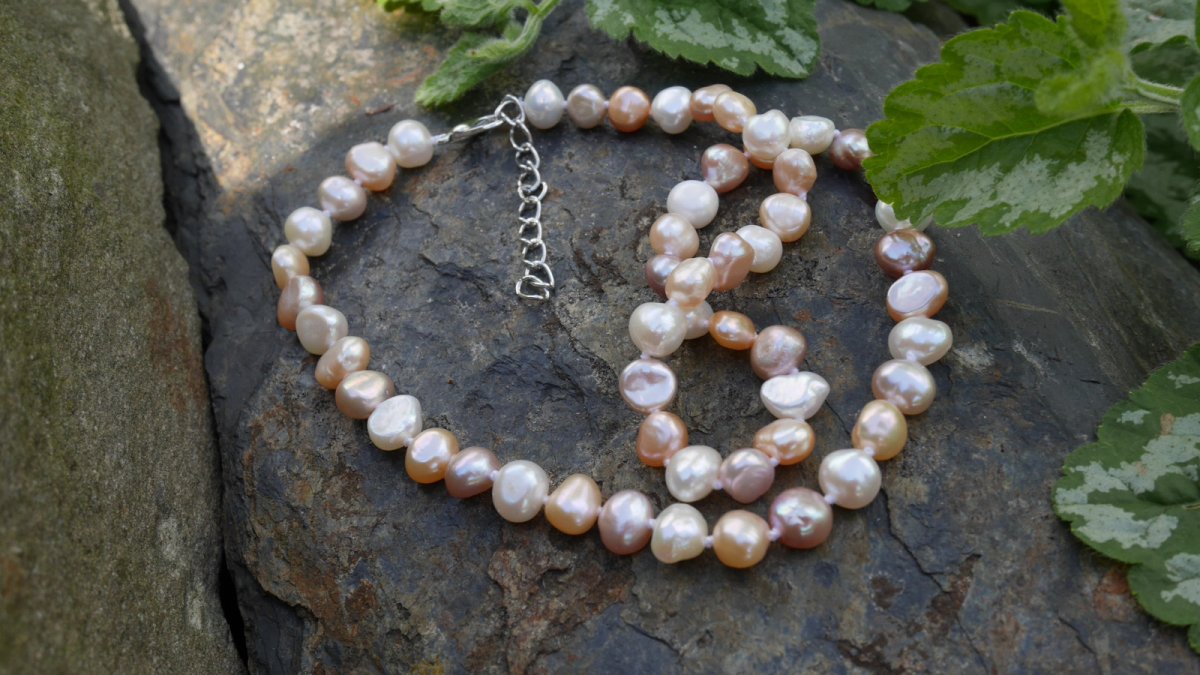Jednotlivé perličky jsou od sebe oddělené uzlíky proti vzájemnému odírání. Perly nejsou přibarvované, mají přírodní barvy v jemných odstínech - bílá, fialková a růžová, které se pravidelně střídají. Perly vynikají dokonalým leskem s duhovými perleťovými odlesky.