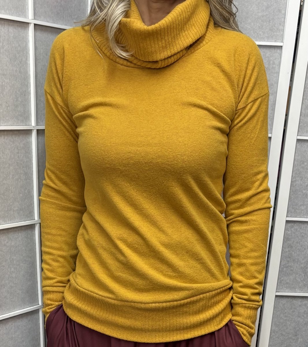Je ušitý z příjemné žebrované pleteniny bavlna/polyester/elastan.