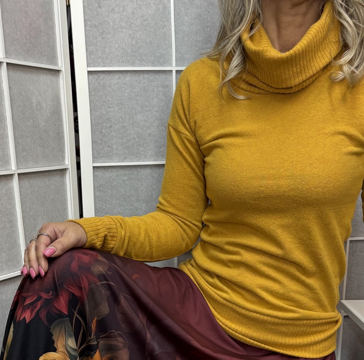 Střih je mírně projmutý, v pase do lemu. Délka rukávu od průkrčníku 70cm.