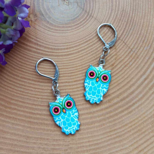 Náušnice se zapínáním - smaltované přívěšky, kroužky platina, zapínání z chirurgické oceli.