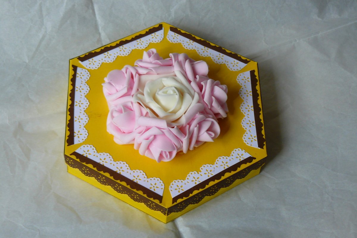 Dárklvá nízká krabička s víčkem, tvar šestihran - průměr 17,8 cm
