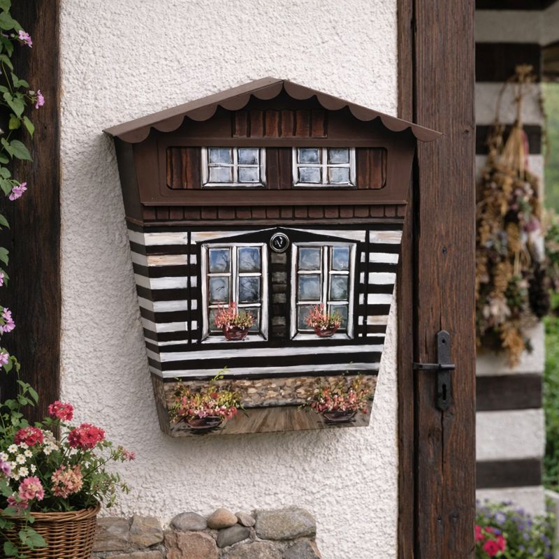 Schránka si zachovává klasický tvar domečku, který je nejen estetický, ale i praktický pro každodenní používání. Povrchová úprava je vhodná pro venkovní umístění a odolává běžným povětrnostním vlivům. Ideální volba pro ty, kteří chtějí funkční prvek proměnit v dekoraci s osobitým charakterem.