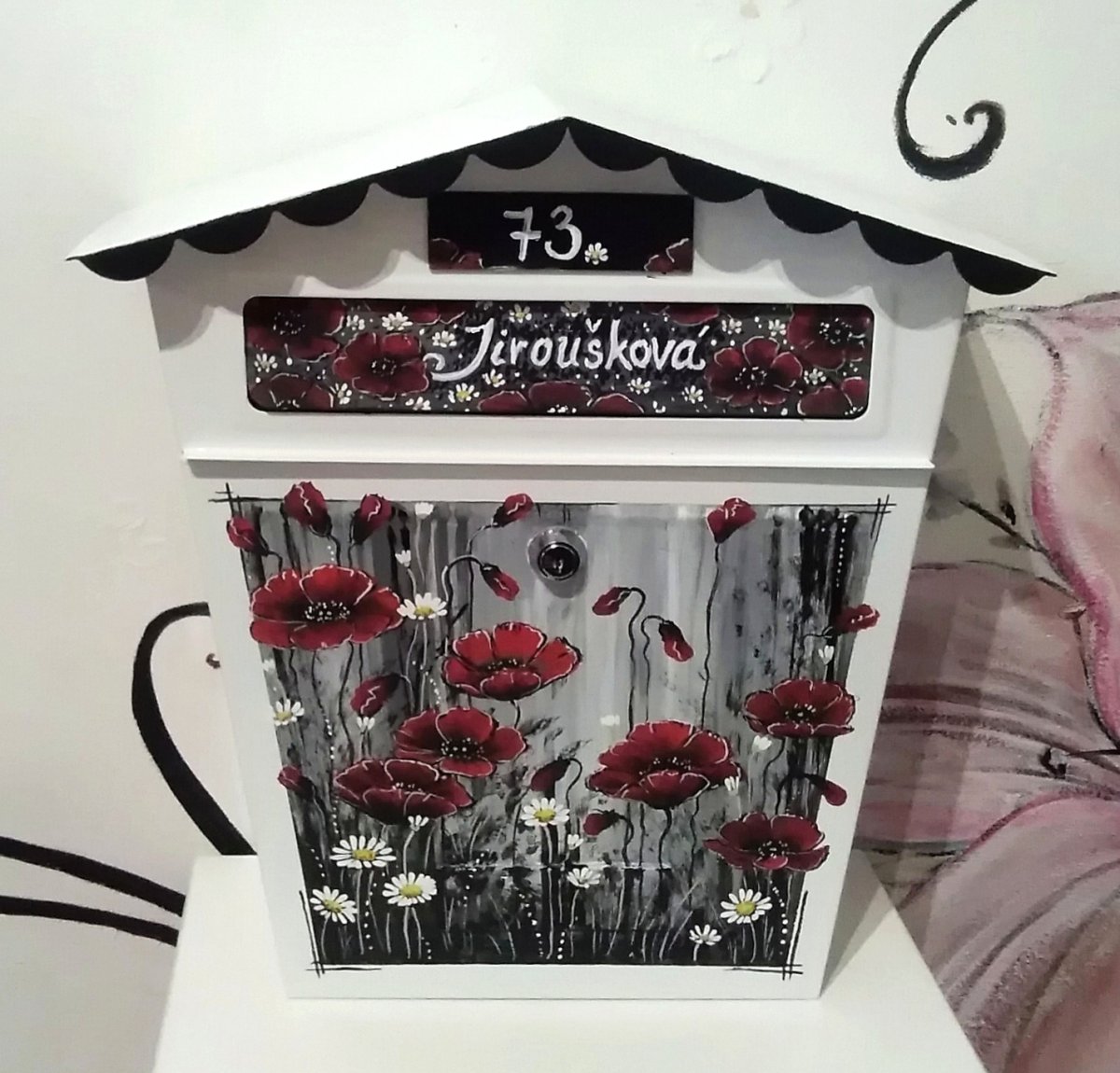 Originální poštovní schránka ručně malovaná, vhodná na plot i na dům.