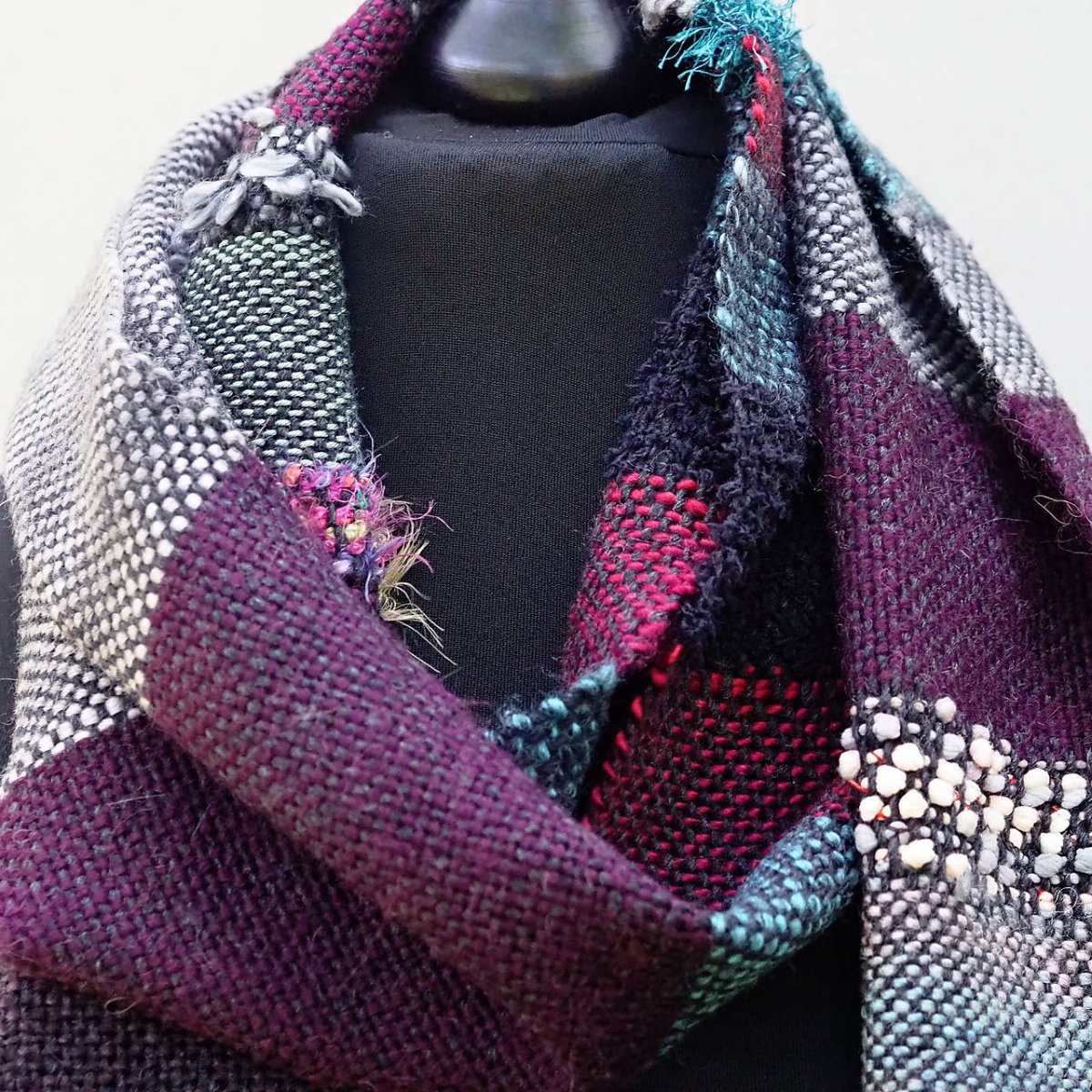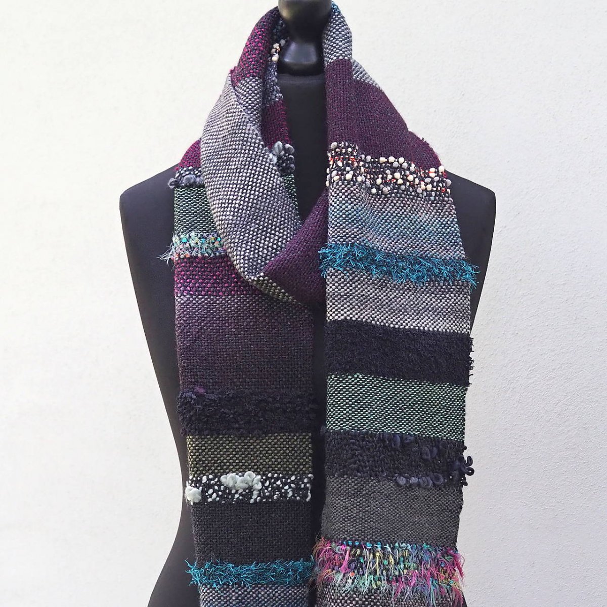 Ručně tkaná šála je tkaná ve volném stylu - freeform.