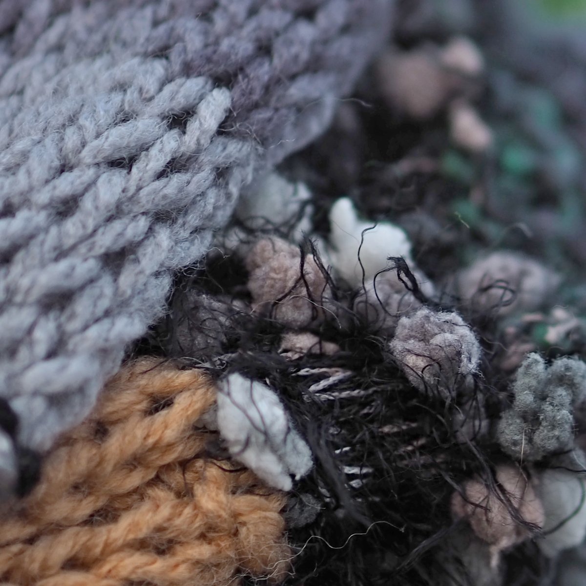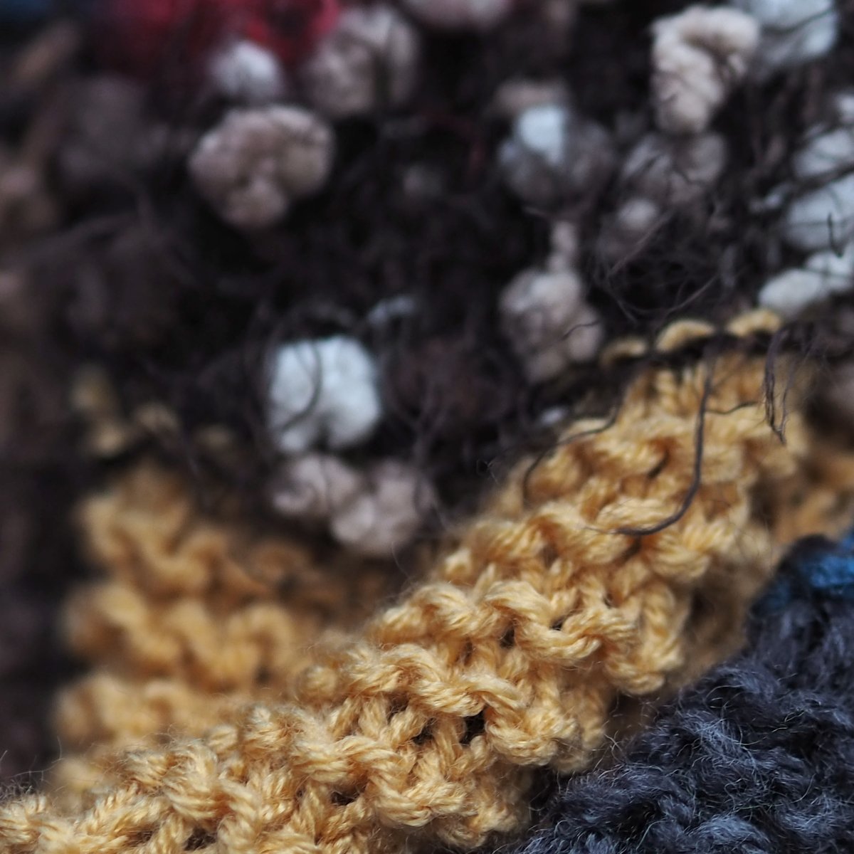 Materiál:směsový - kombinace různých přízí,které vytvoří zajímavý kontrast.