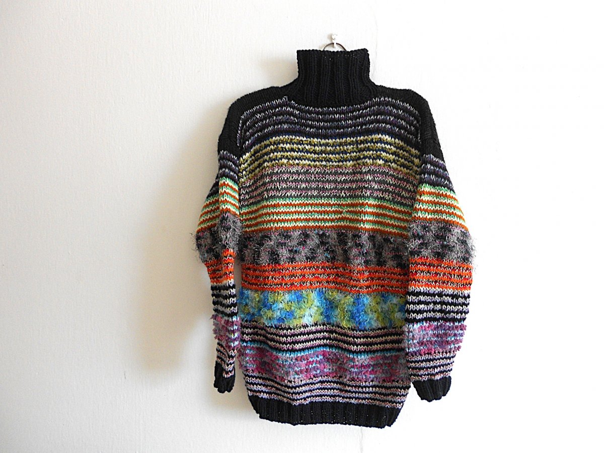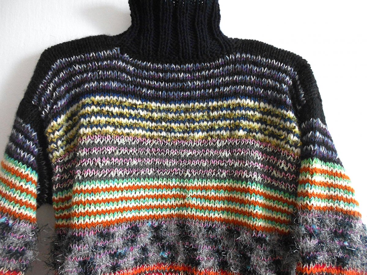 Dámský, ručně pletený, teplý svetr, velikost S,M: délka 64 cm, šířka 47 cm, vnitřní délka rukávu 44 cm. Doporučuji jemné praní a sušit volně položené.