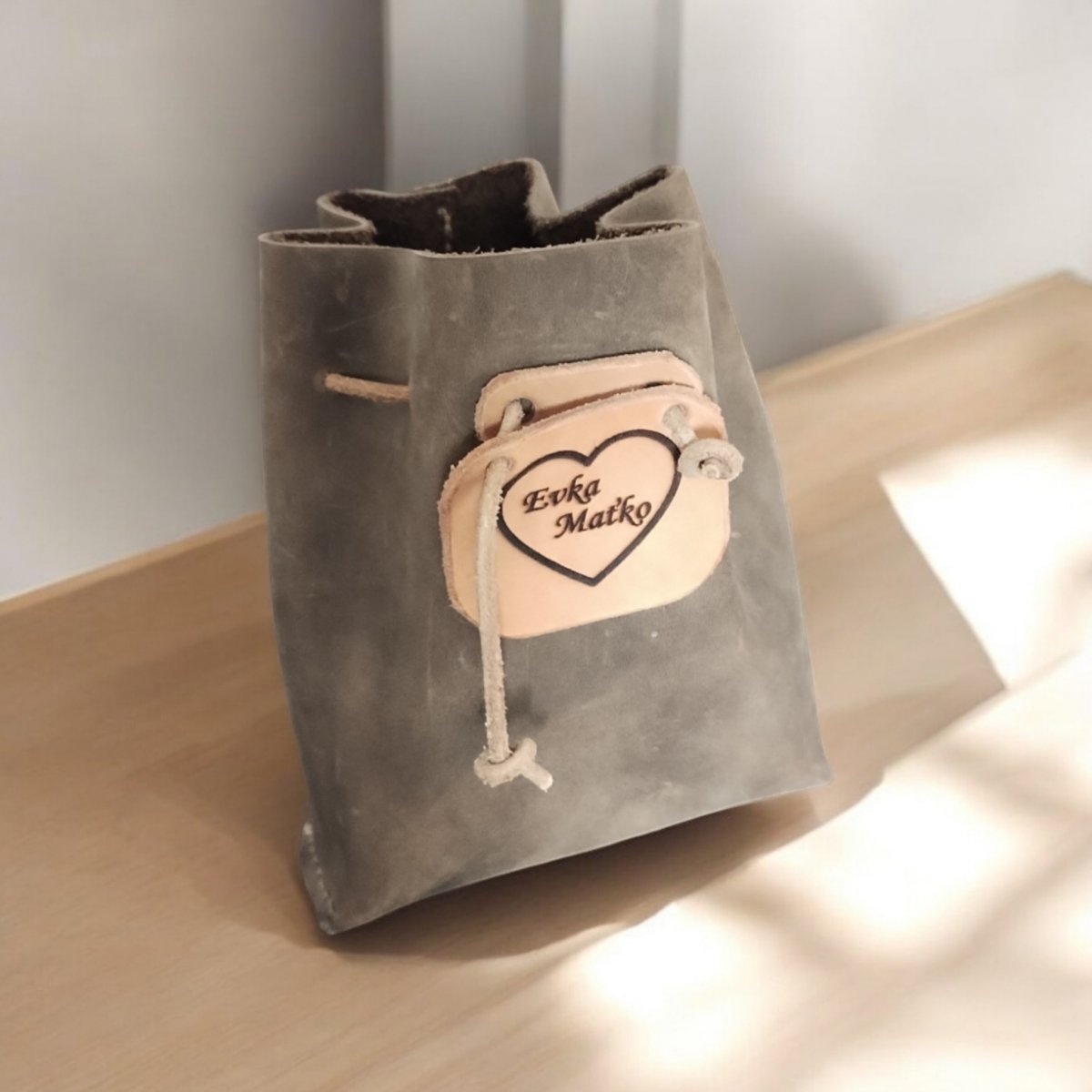 Ručne šitý mešec z pravej kože, crazy horse. Vhodný na rôzne rodinné príležitosti, svadby, narodeniny a podobne. V cene gravírovaní štítok podľa vášho výberu.