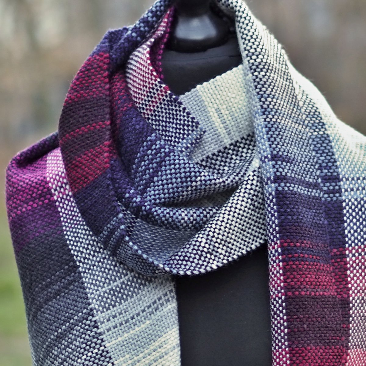 Útek - prolínající se nepravidelné pruhy v barvách odstínů modrých,bordových,fialkových a bílých až bežových,které jsou uspořádány do jemných bloků a přechodů - viz.detailní foto.