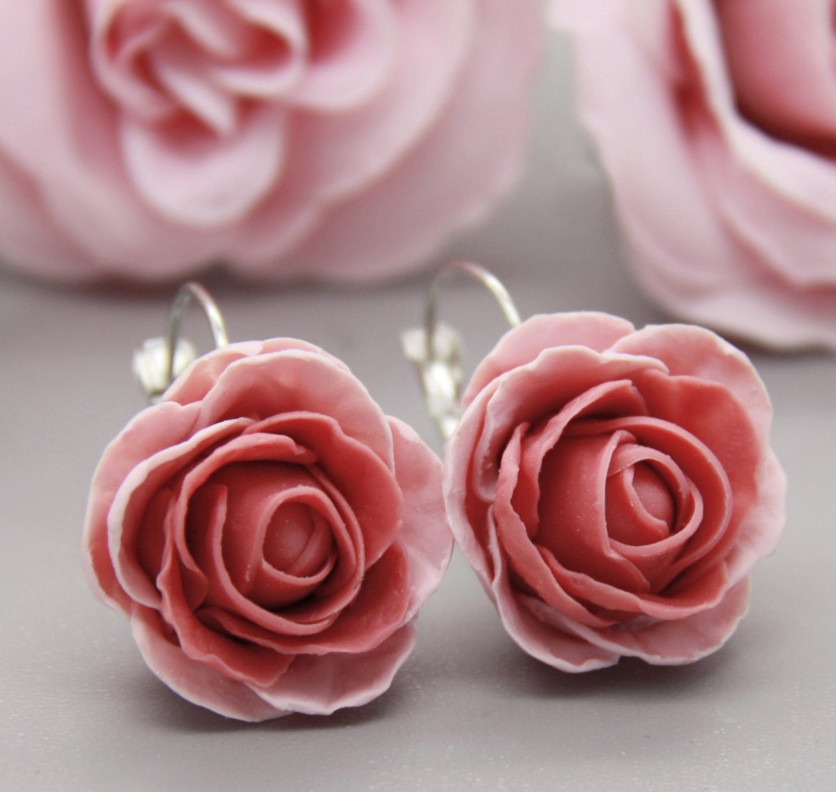 ručně modelovaný šperk z polymerové hmoty, tmavší barva na středu přechází do světlejšího odstínu na krajích, jsou jakoby růžová s mírným nádechem oranžové, odpovídá fotografiím,