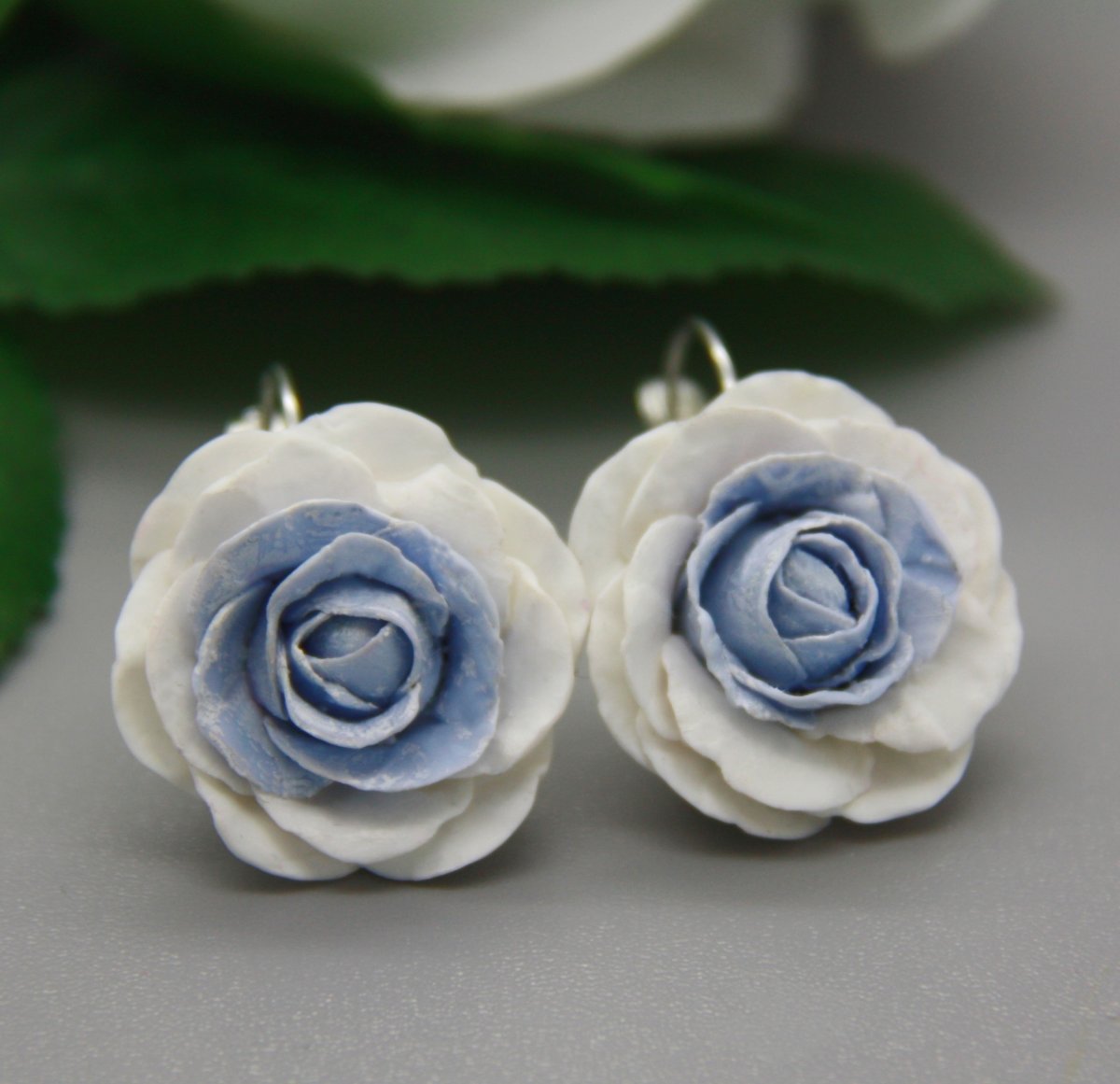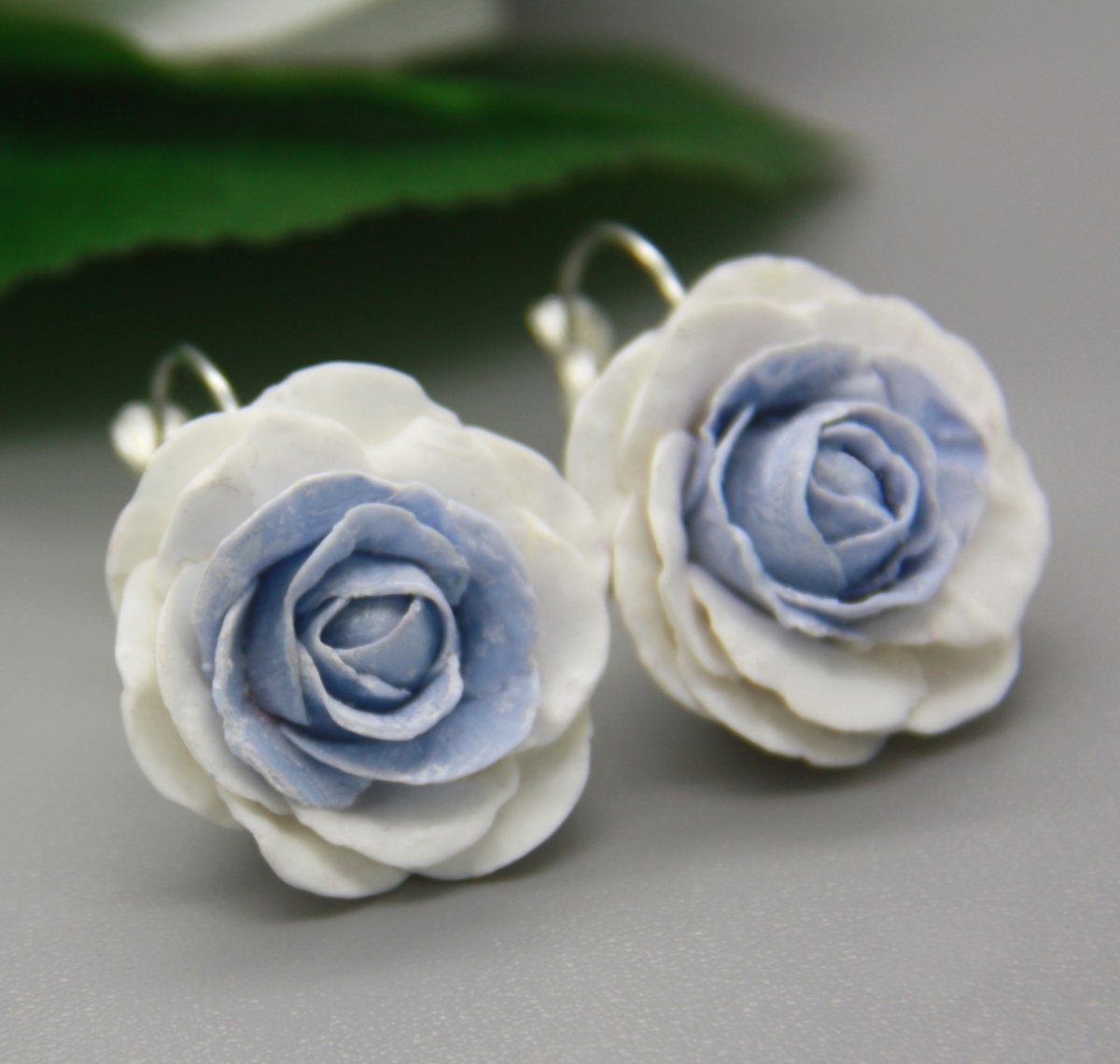 ručně modelovaný šperk z polymerové hmoty, barva bílá a světlemodrá