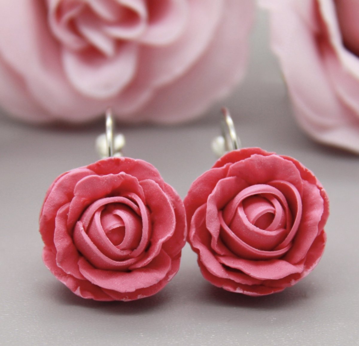 ručně modelovaný šperk z polymerové hmoty, tmavší odstín růžové, odpovídá fotografiím,