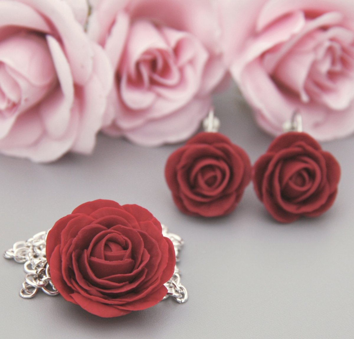 ručně modelovaný šperk z polymerové hmoty, barva červená bordó..špatně se fotí...velmi krásný třeba i dárkový set