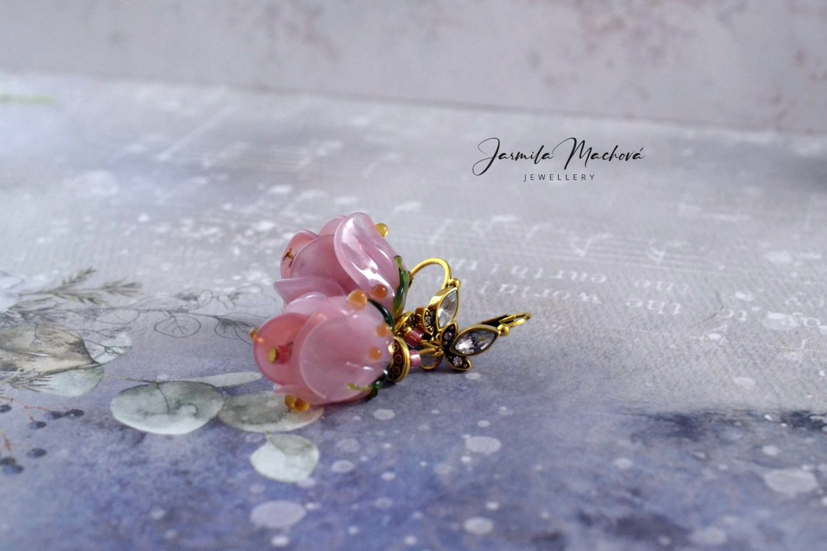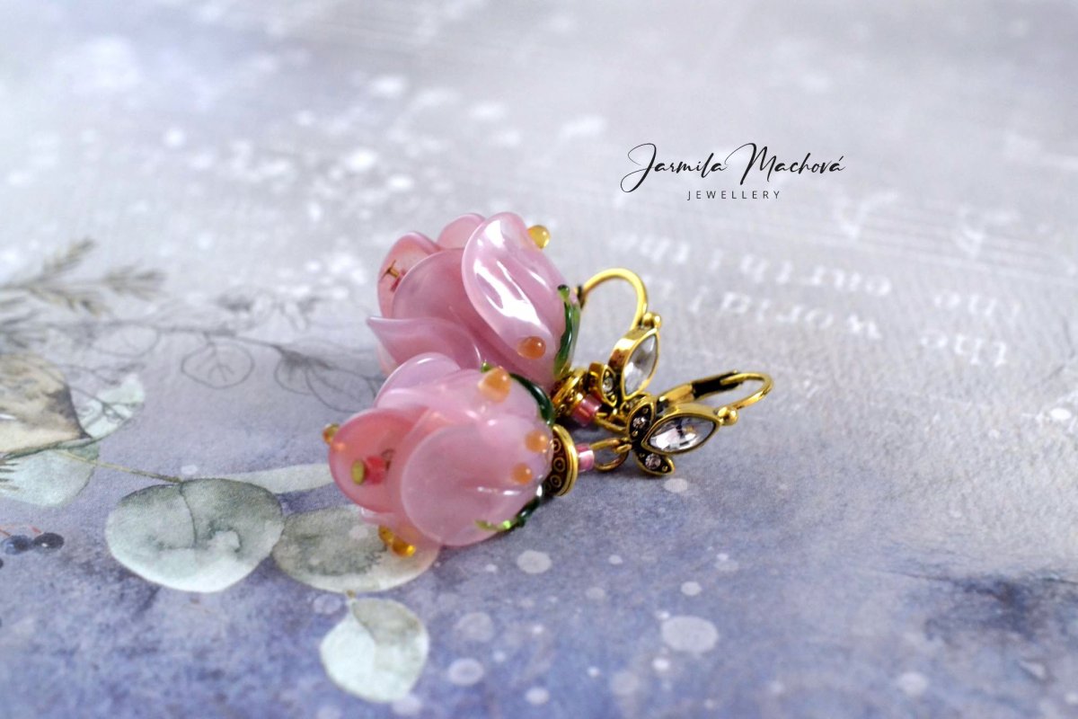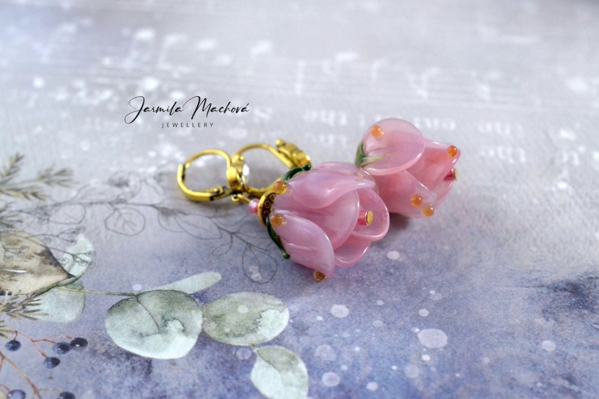Růženka... ručně vinuté sklo ...háčky z obecného kovu...