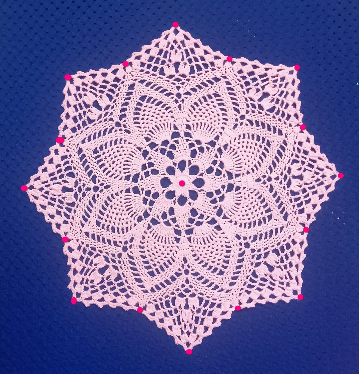 Průměr dečky 340mm. Na obrázku č.2 jsou vyznačené body pro správné zafixování dečky po vyprání a naškrobení.
