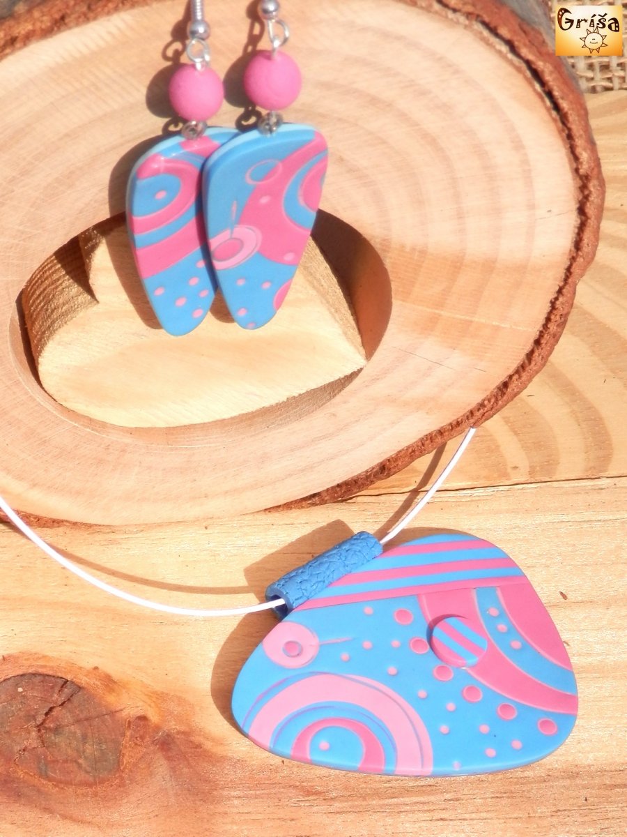 Šířka přívěsku je 60 mm, zavěšeno na bižuterní obruči světlounce růžové barvy o průměru 15 cm, šroubovací zapínání.