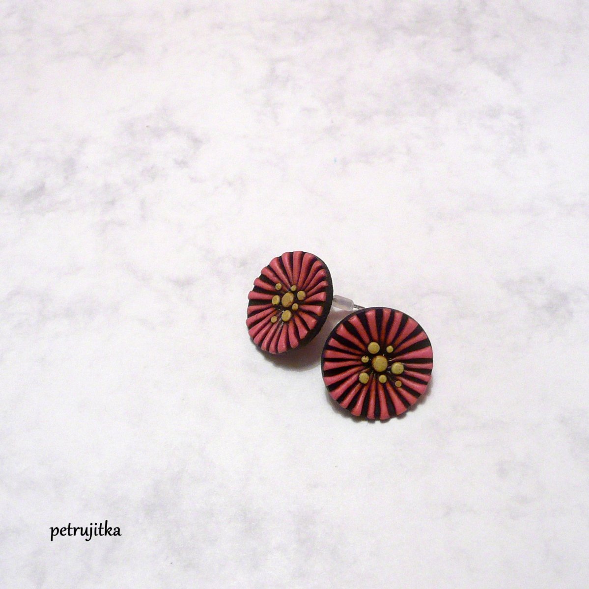 Originální náušnice (pecky) z polymerové hmoty. Barva je růžová