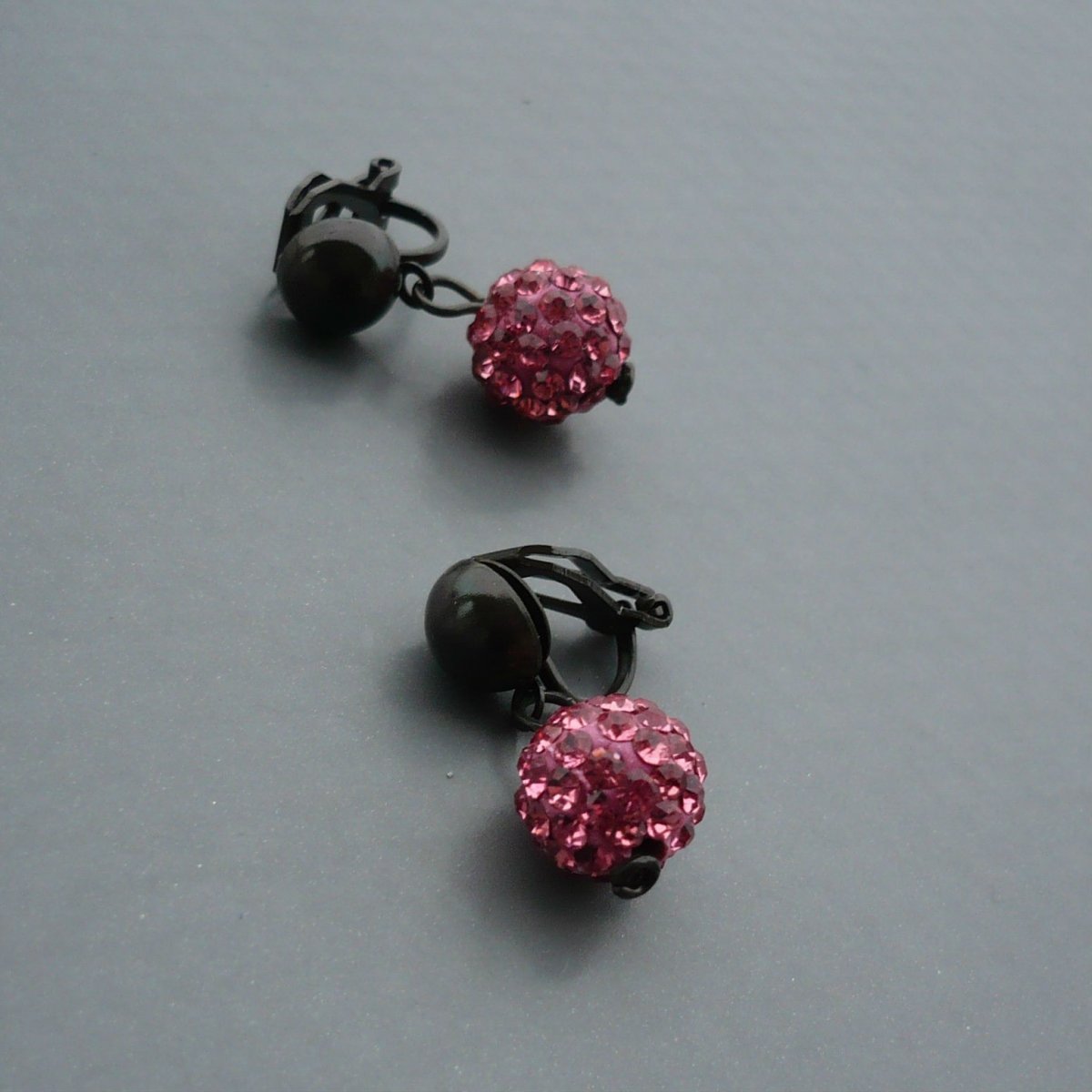Náušnice jsou z růžového korálku posetého mnoha třpytivými kamínky téže barvy.