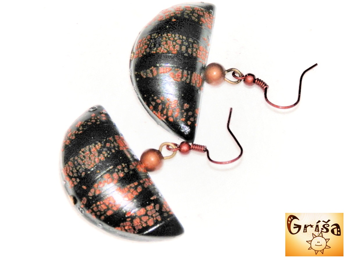 Průměr půlkruhových dutých náušnic je 40 mm, nalakováno.