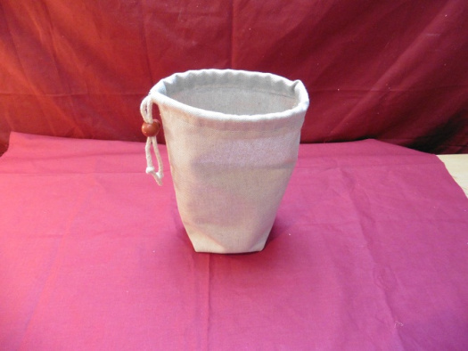 sáček na drobnosti, materiál pevný režný ke stažení se šňůrkou. Velikost 20x16 cm.