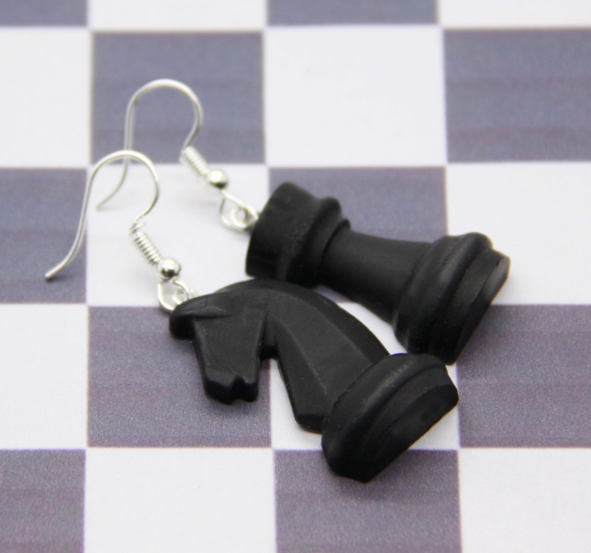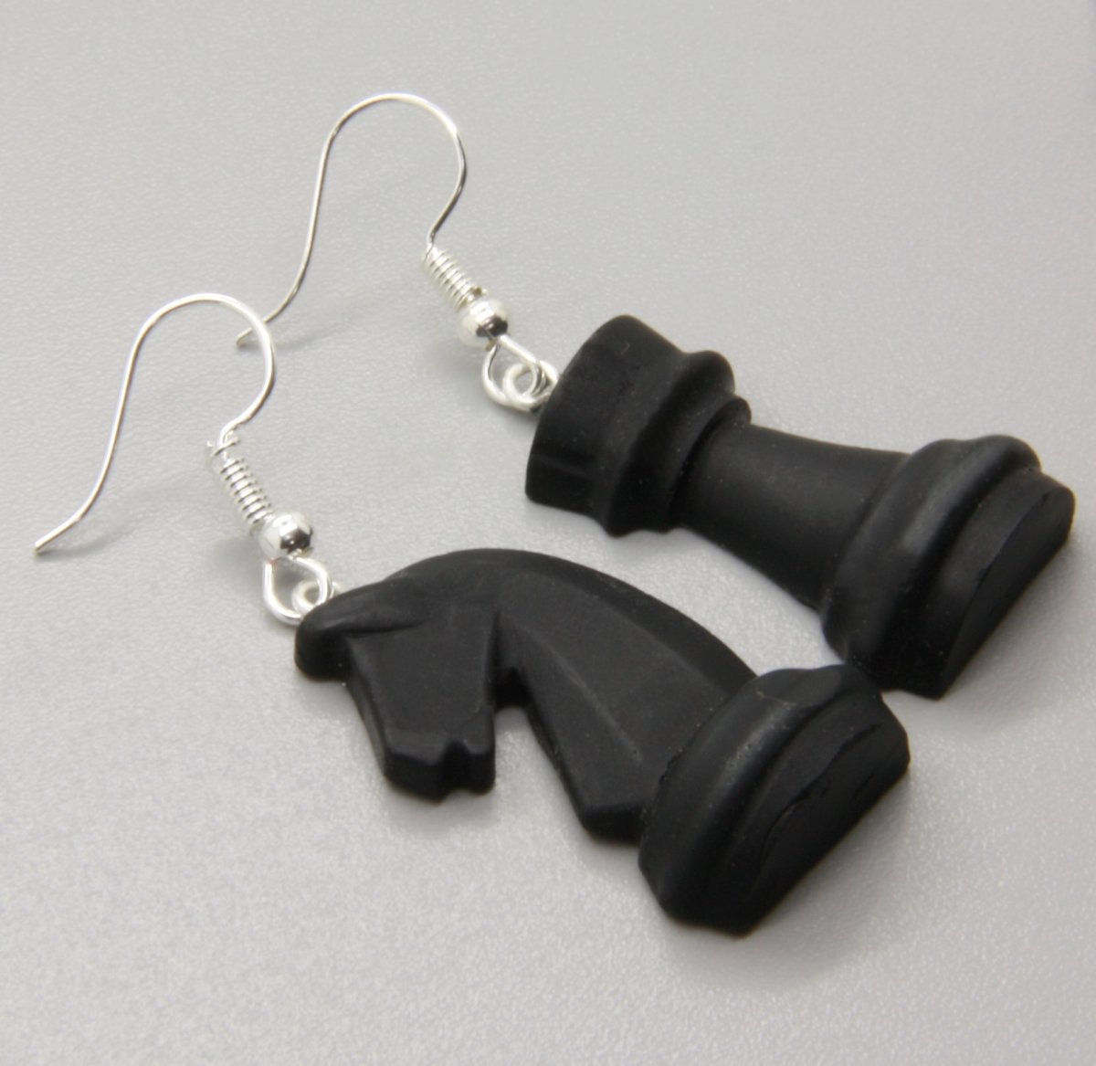 ručně modelovaný šperk z polymerové hmoty v podobě šachových figurek, výška 2,5 cm