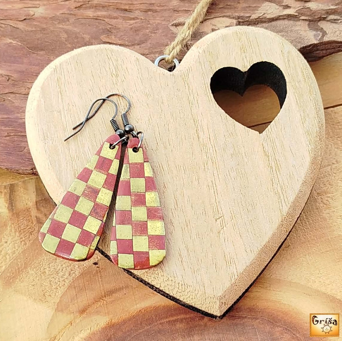 Délka visacích náušnic se šachovnicovým vzorem je 45 mm.