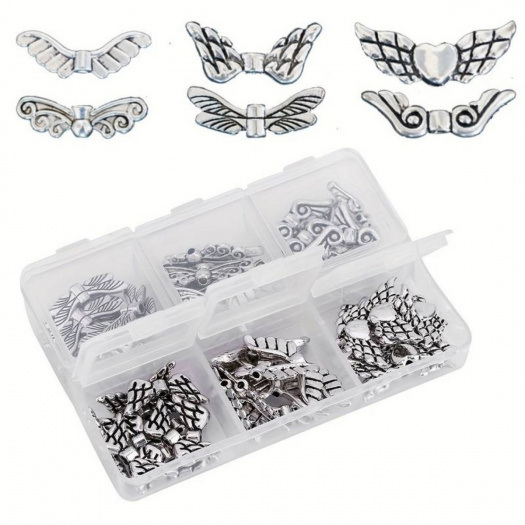 Sada andělských křídel je vhodná na výrobu andělíčků, náramků apod. V plastovém boxu je celkem 60 kusů.