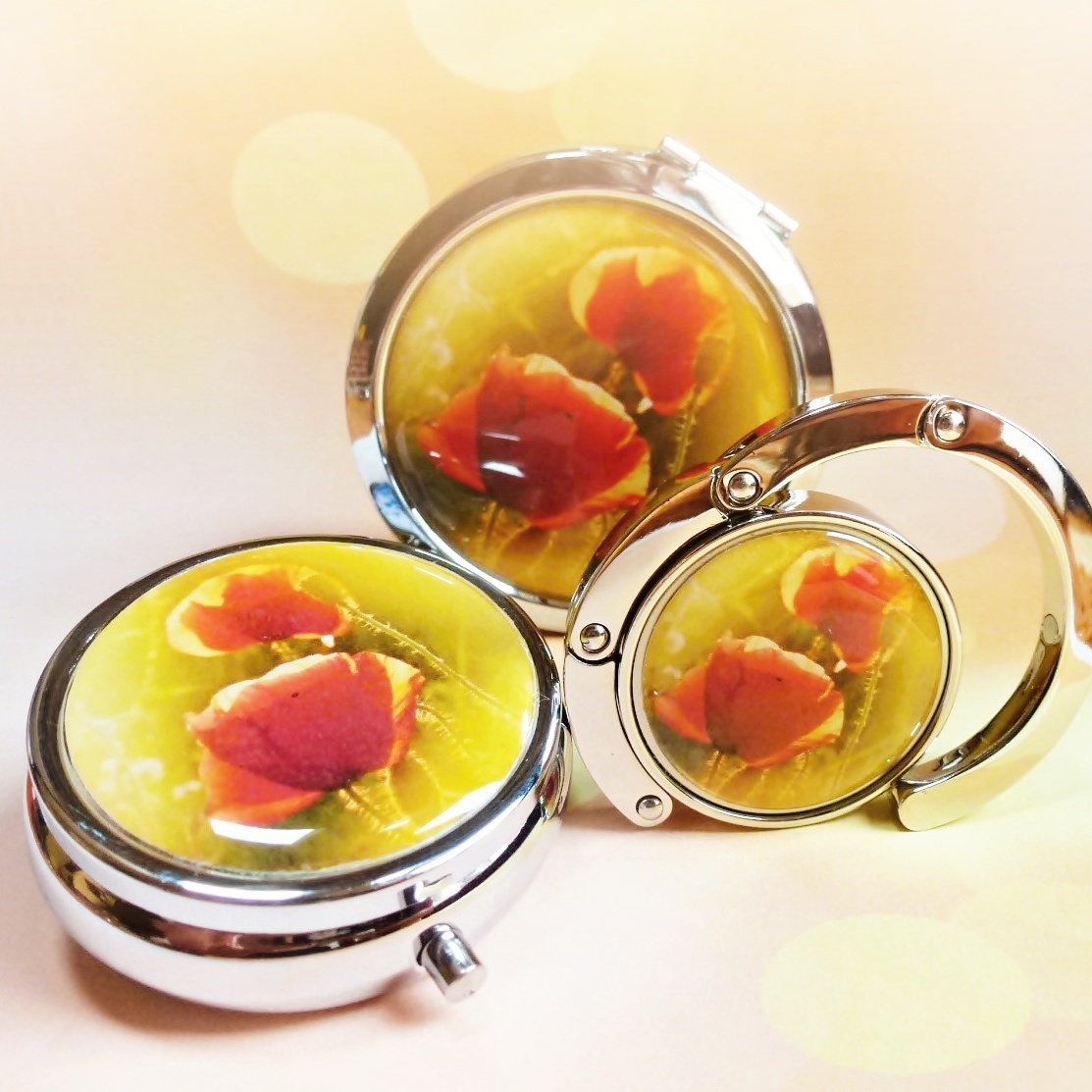 zrcátko, praktické, dárek, sada, set, zrcátko, krabička, lékovka, háček na kabelku, véšák, věšáček, vánoce, den žen, den matek, valentýn, text, na přání, jméno, monogram, citát, iniciály, vlčí mák, máková, léto, letní, louka, na louce, luční, podvečer, světlo, květ, květina
