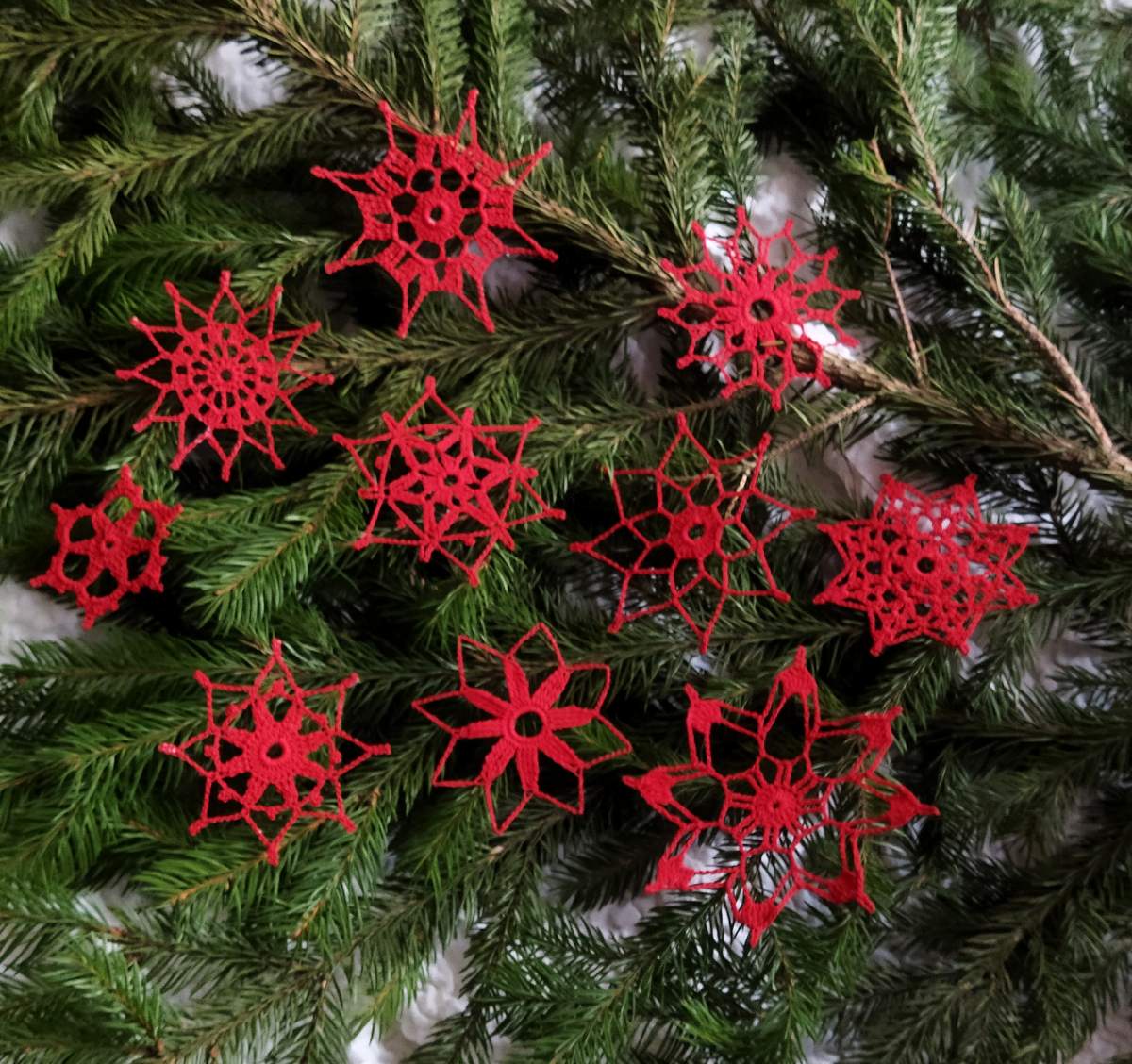 Pro snadné ladění vánoční výzdoby nabízím hotové sady vloček, ručně háčkovaných ze 100% bavlny a pečlivě naškrobených, aby krásně držely svůj tvar. Velikost vloček se pohybuje v rozmezí 5–8 cm.